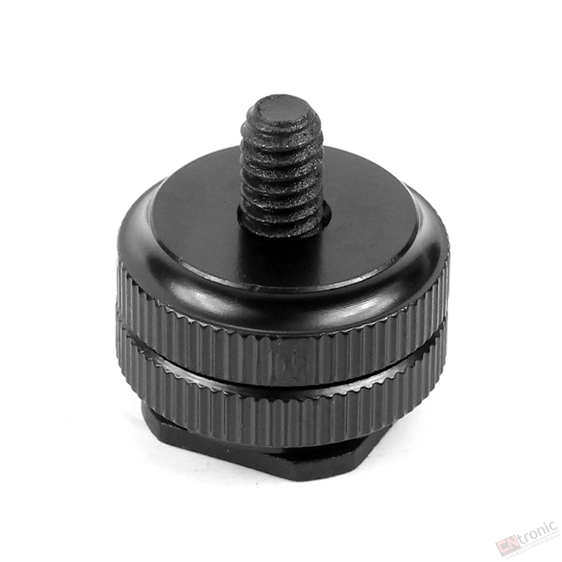 Allows devices with standard 1/4" threaded holes to be mounted on the flash hot shoe socket.