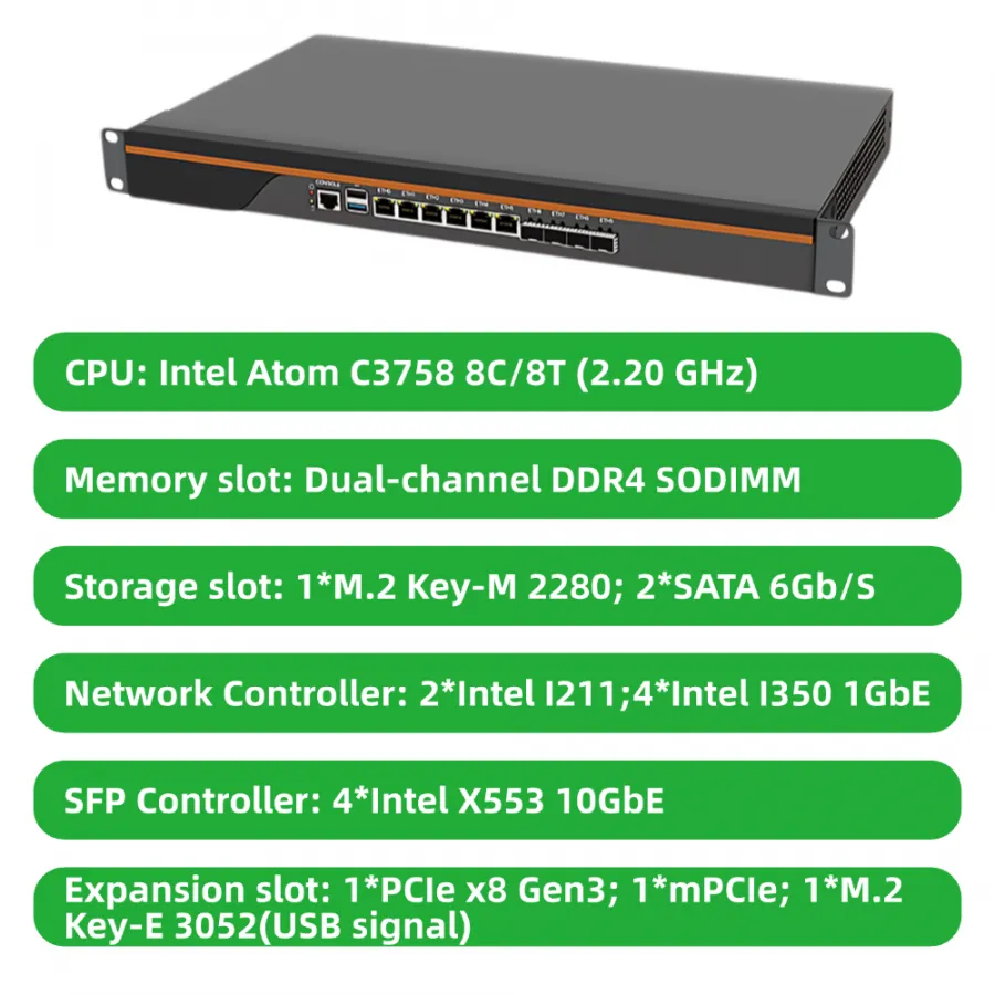 Ethernet Controller 6x RJ45 (2x Intel i211+4x i350) 1Gigabit Ethernet