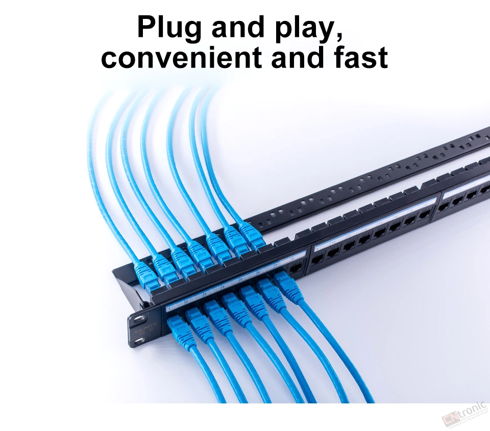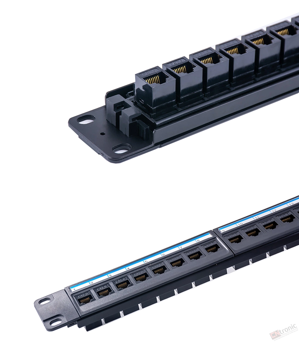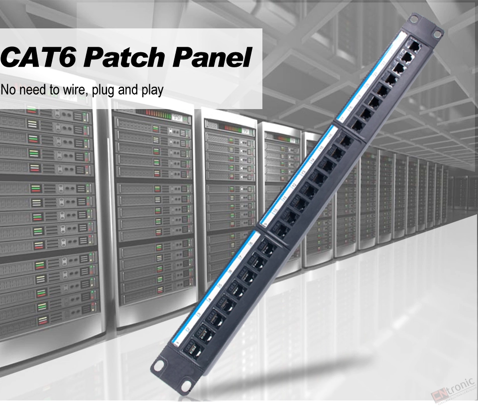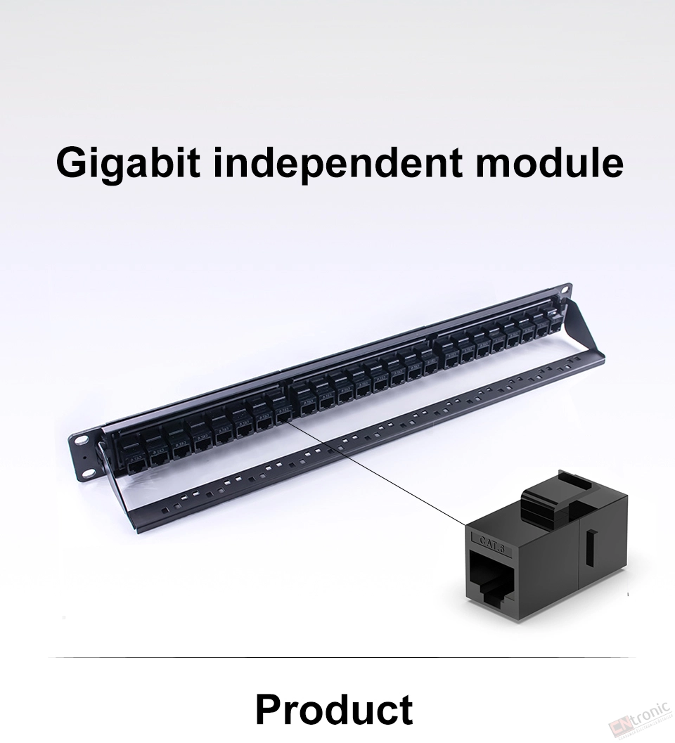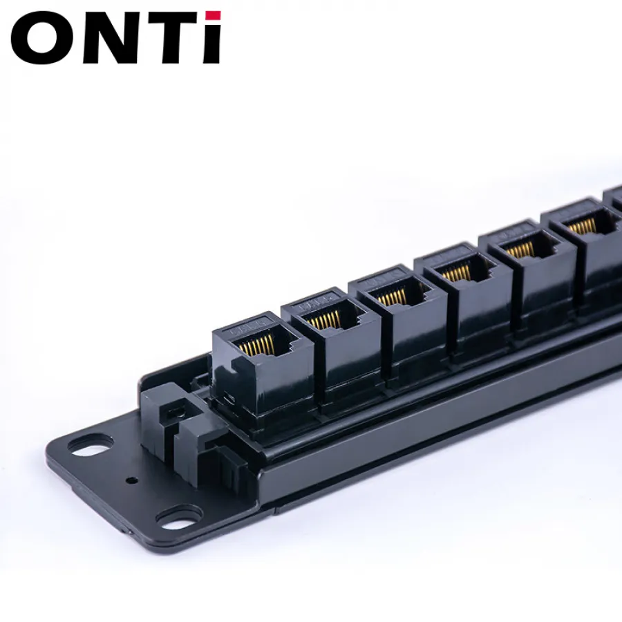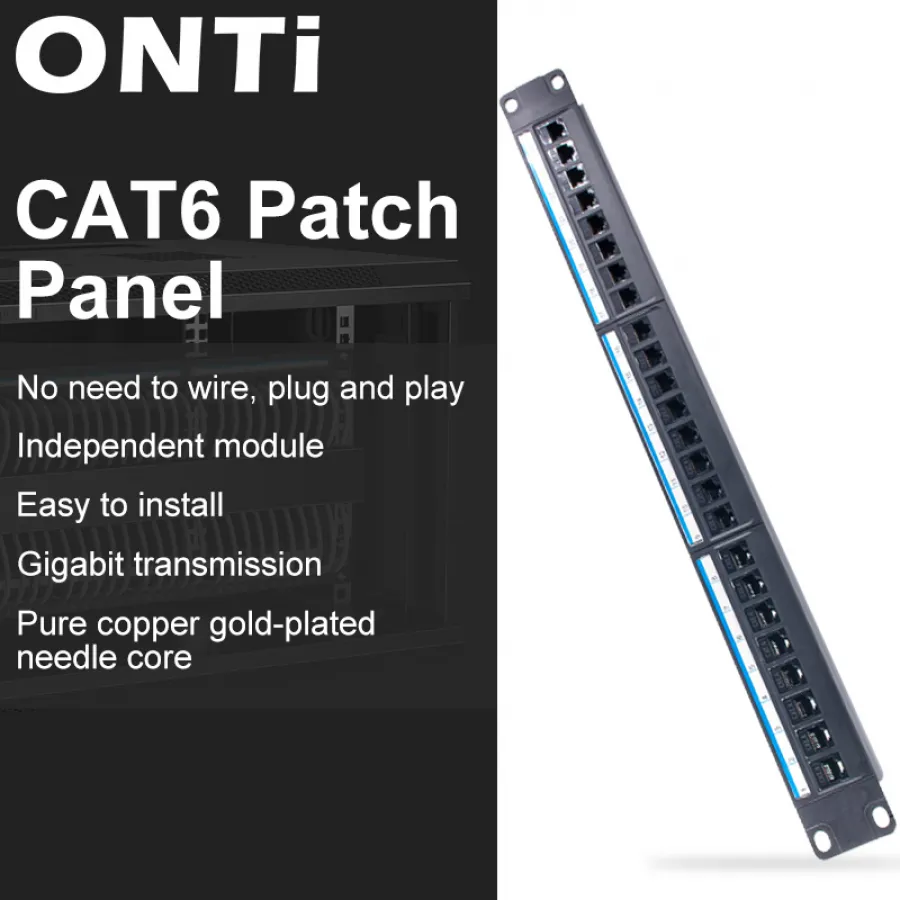 ONTi 19in 1U Rack 24 Port Straight-through CAT6 Patch Panel RJ45 Network Cable Adapter Keystone Jack Ethernet Distribution Frame