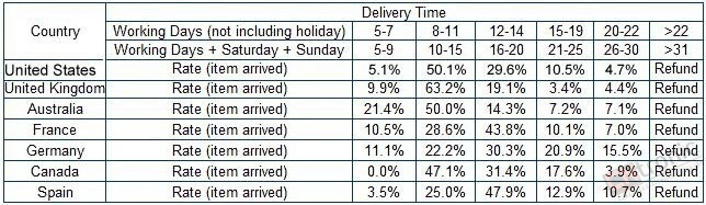 If you can't find the estimated delivery time on the product detail page, you can look at the following table for reference.