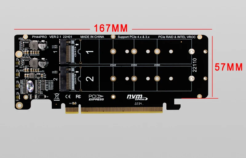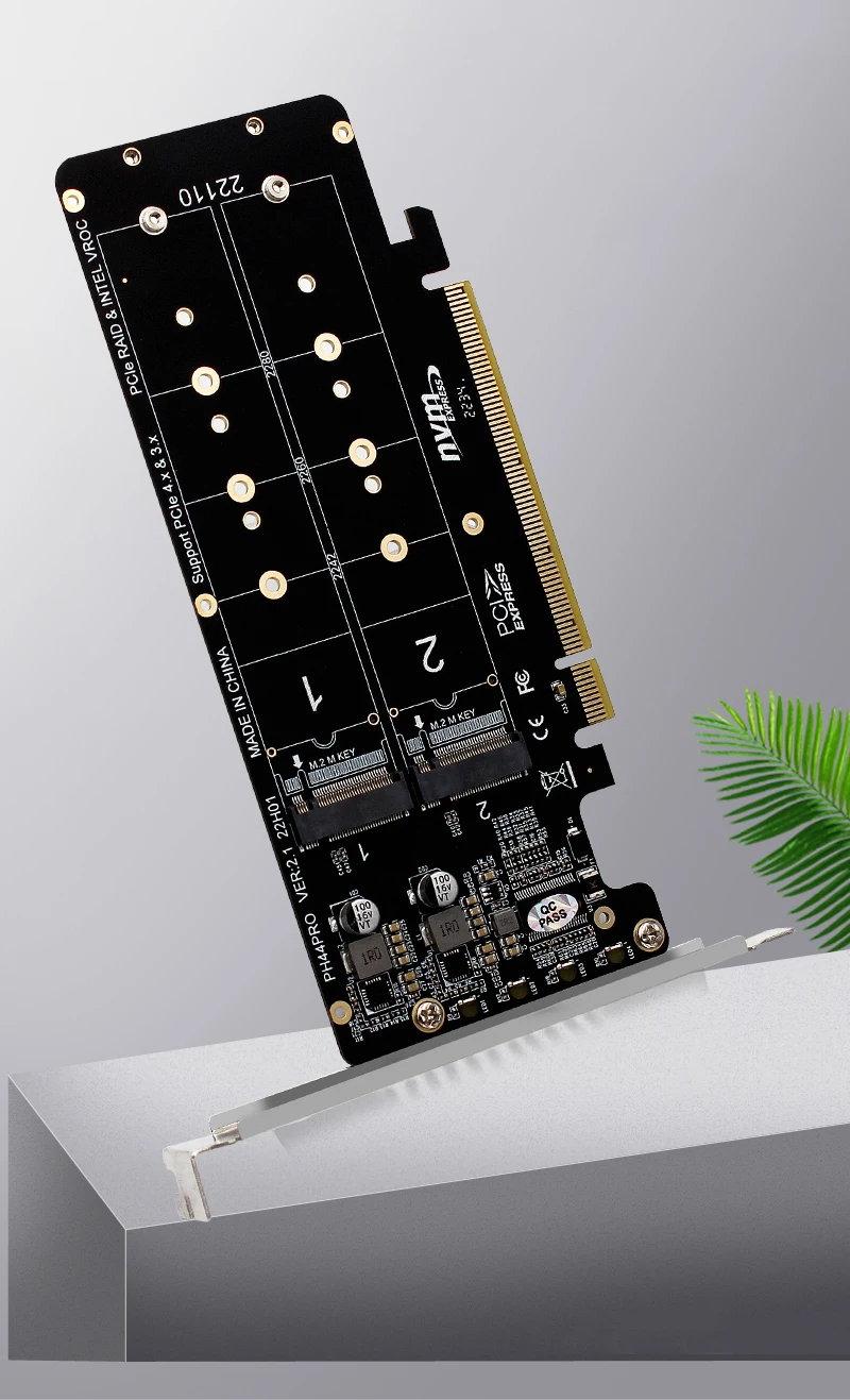 1. Front and back double-sided 4-disk expansion at the same time Compatible with 2242/2260/2280/22110 specifications Support M.2 M-KEY NVME protocol SSD and Optane support M.2 PCle protocol expansion cards and devices.