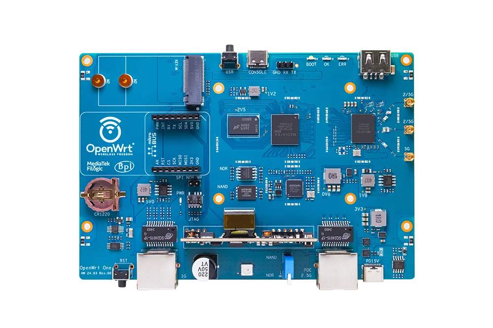 OpenWrt One is the first board design with OpenWrt opensource communtity.and designed in collaboration with Banana Pi that will also handle manufacturing and distribution of the router board. The OpenWrt One/AP-24.XY router should provide a source of income for the project, for example, to cover the cost of hosting and OpenWrt conferences, with Banana Pi selling the board through their distribution network, and for every device sold, donating to the Software Freedom Conservancy (SDC) with the funds earmarked for OpenWrt.