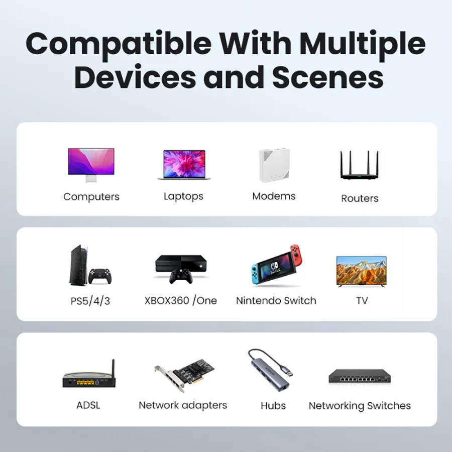 • Versatile Compatibility :This network LAN cord is compatible with a wide range of devices including laptops, routers, PCs, PS5, PS4, PS3, Xbox, and more, making it a versatile addition to your tech arsenal.