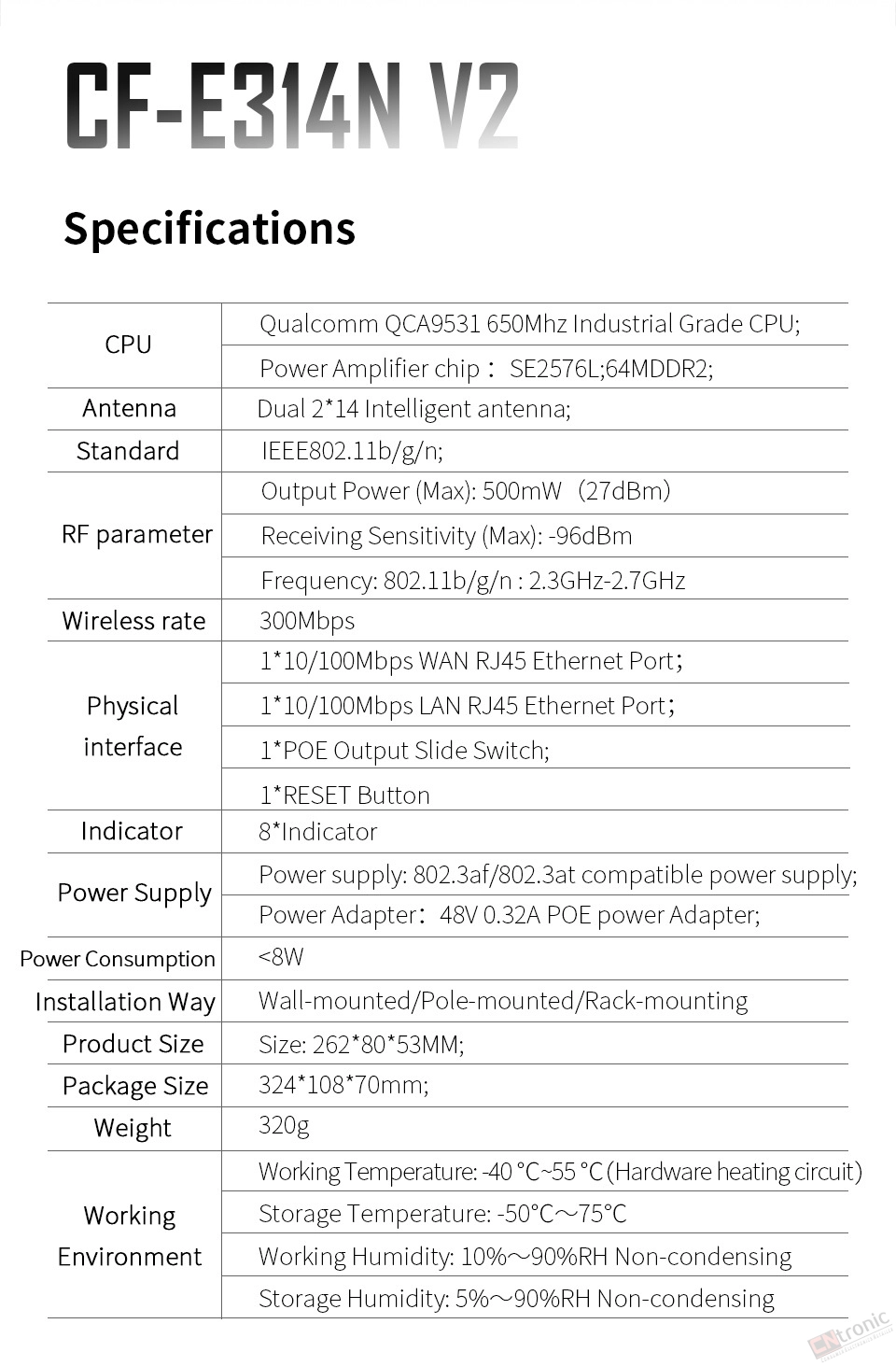 CF-E314N V2 wireless network bridge is designed for outdoor long-distance transmission