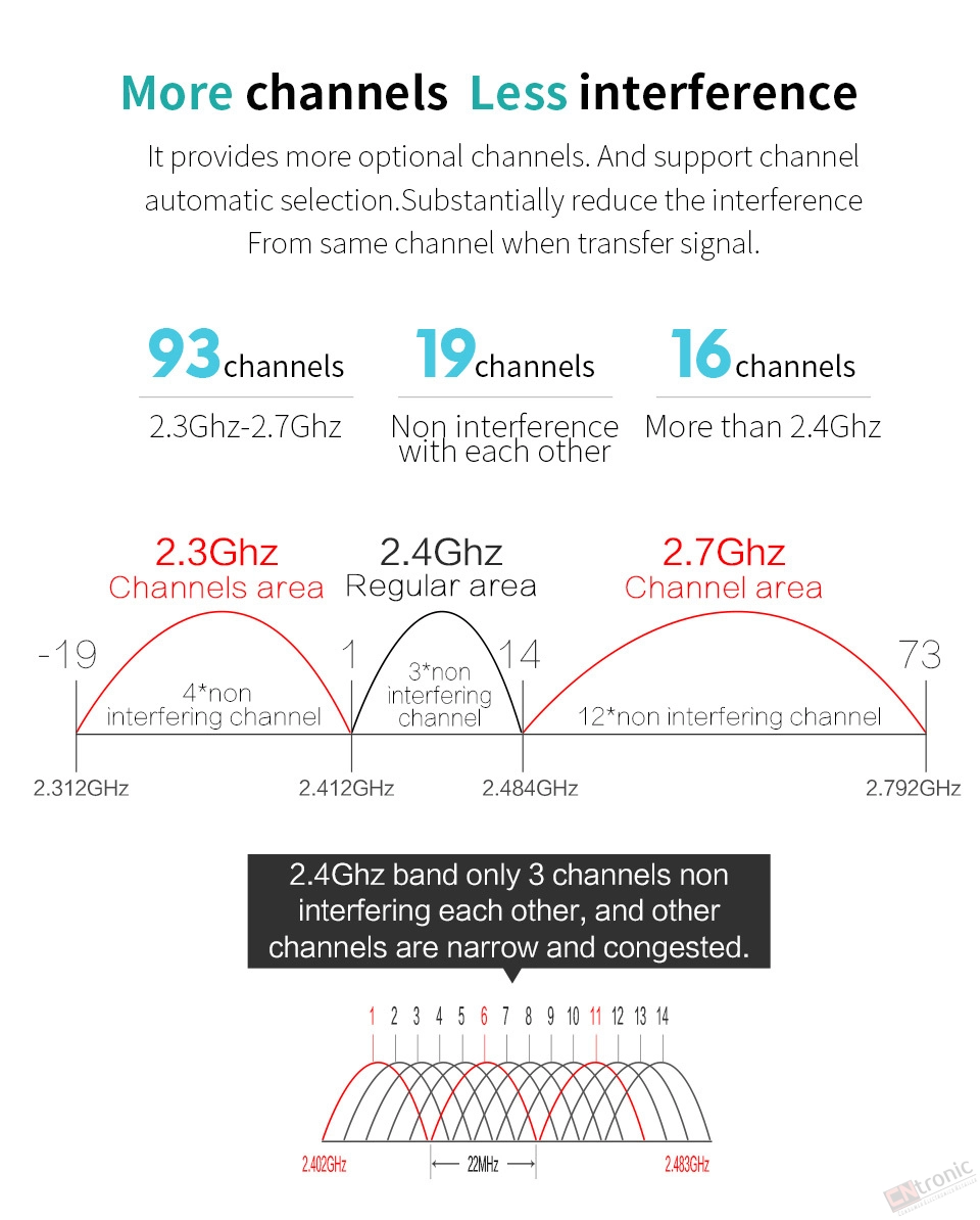 It provides more optional channels And support channel automatic selection. Substantially reduce the interference. From same channel when transfer signal