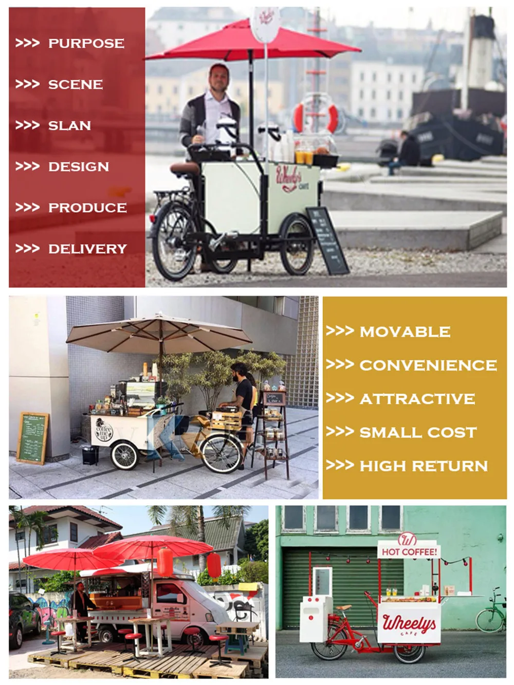 Street mobile coffee ice cream hand push food kiosk cart Packing and Shipping