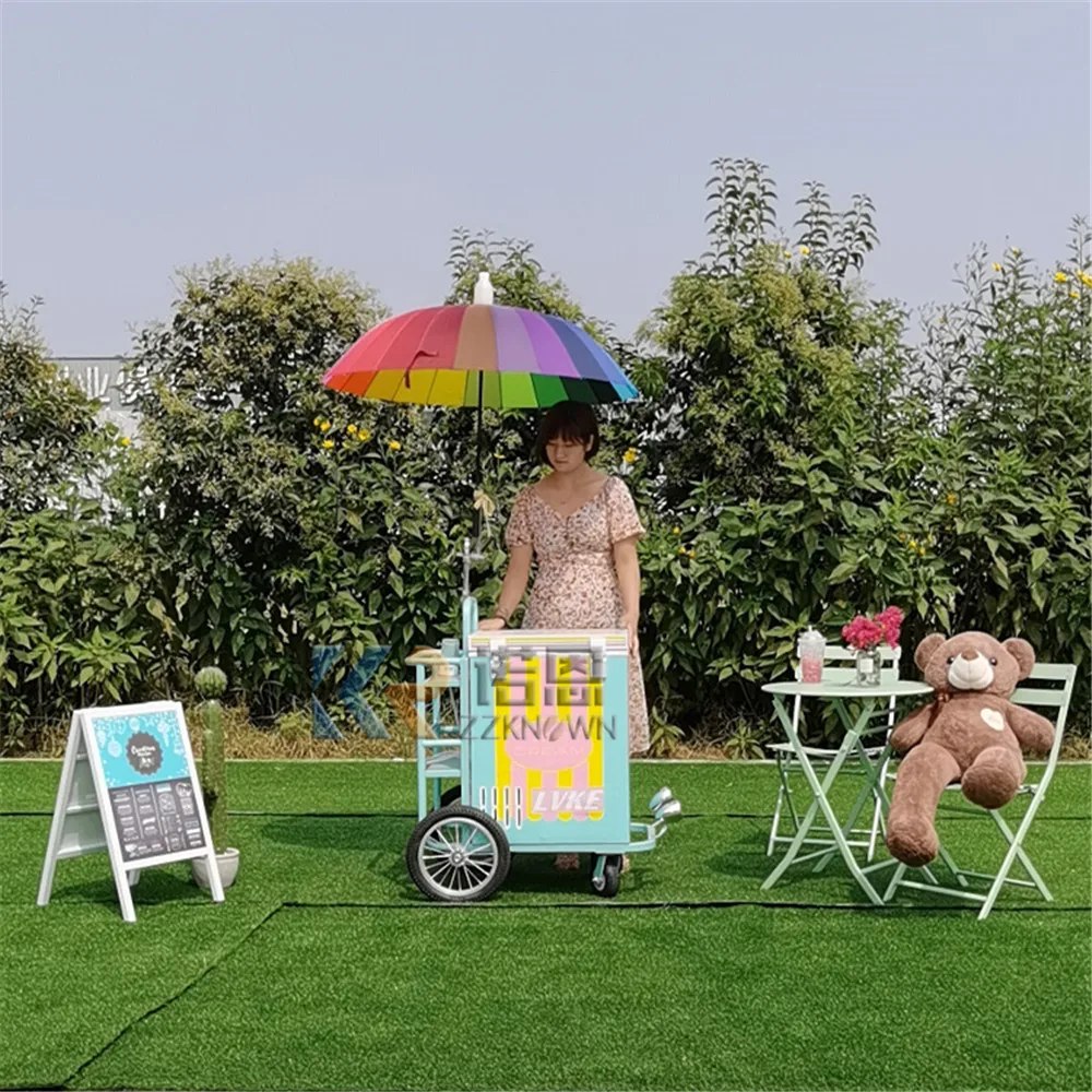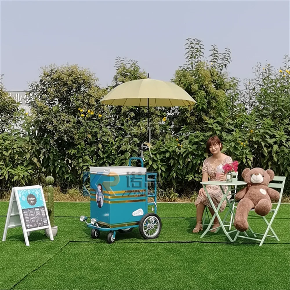 Commercial Mini Frozen Ice Cream Display Cart Street Italian Hand Push Gelato Ice Cream Cart