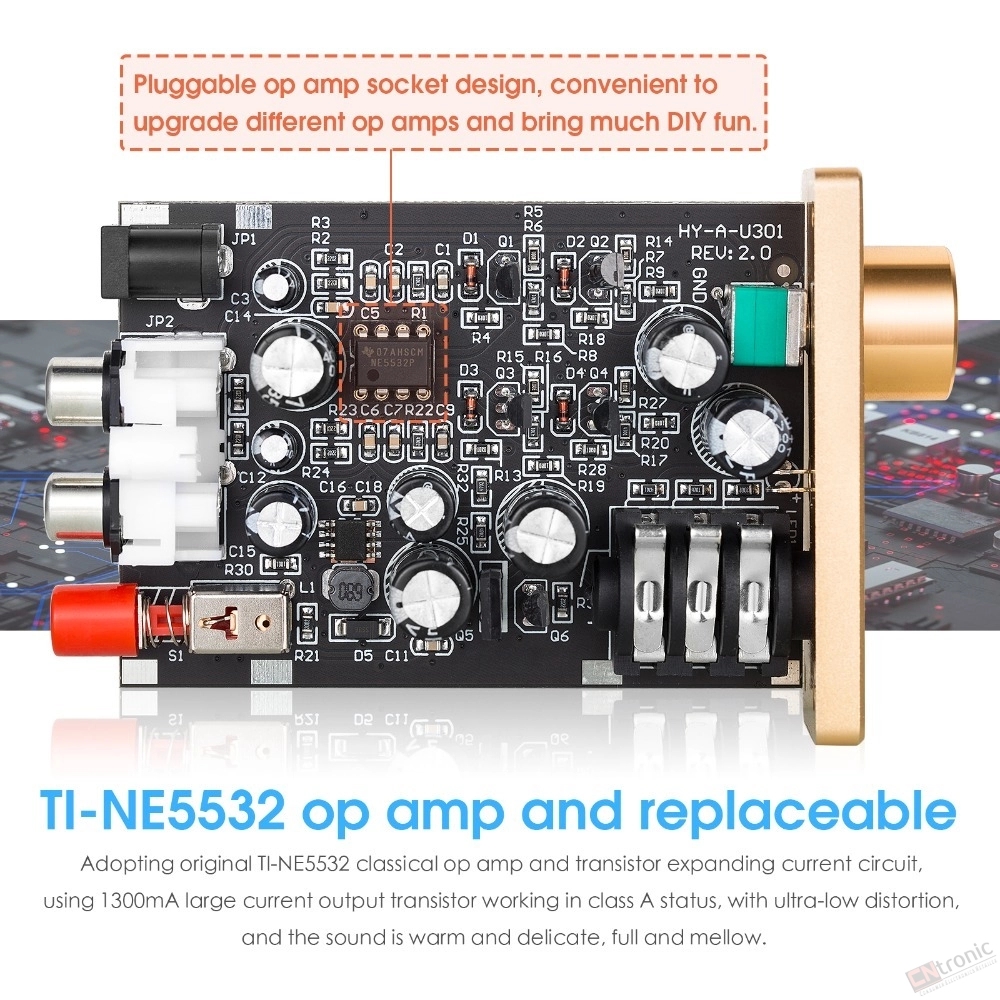 Pluggable op amp socket design, convenient to upgrade different op amps and bring much DIY fun and playability for audiophiles. Smooth and mellow sound, suitable for listening to vocals or string music, classic or pop music, and even with unique charm when playing rock.