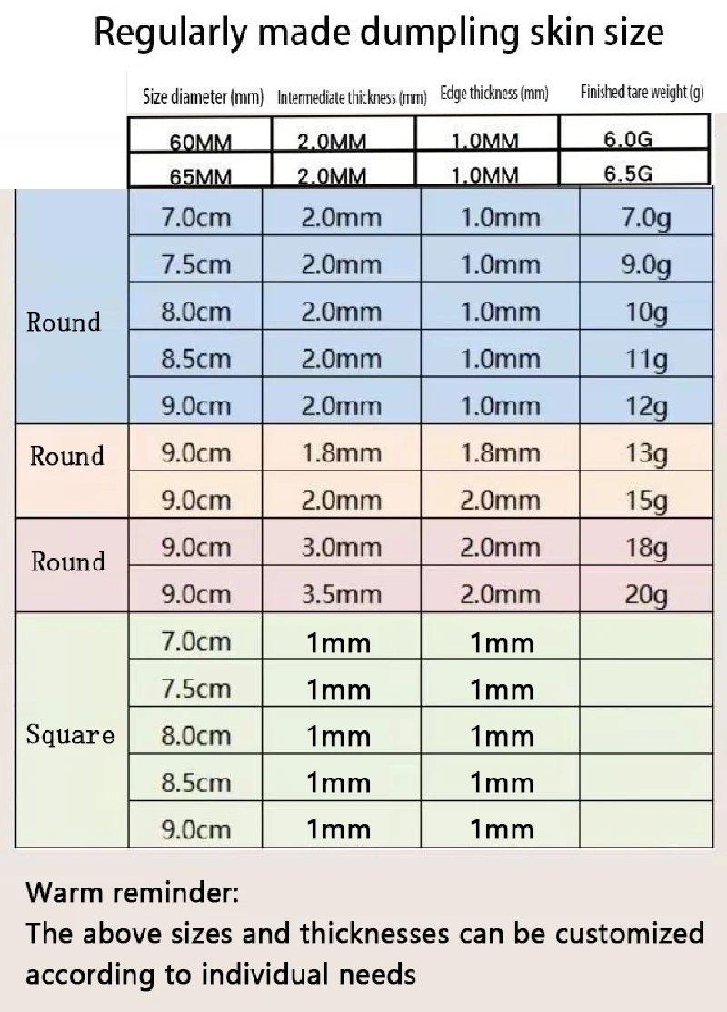 • Product types that can be produced: Dumpling skin Chaos skin Steamed bun skin Shaomai skin
