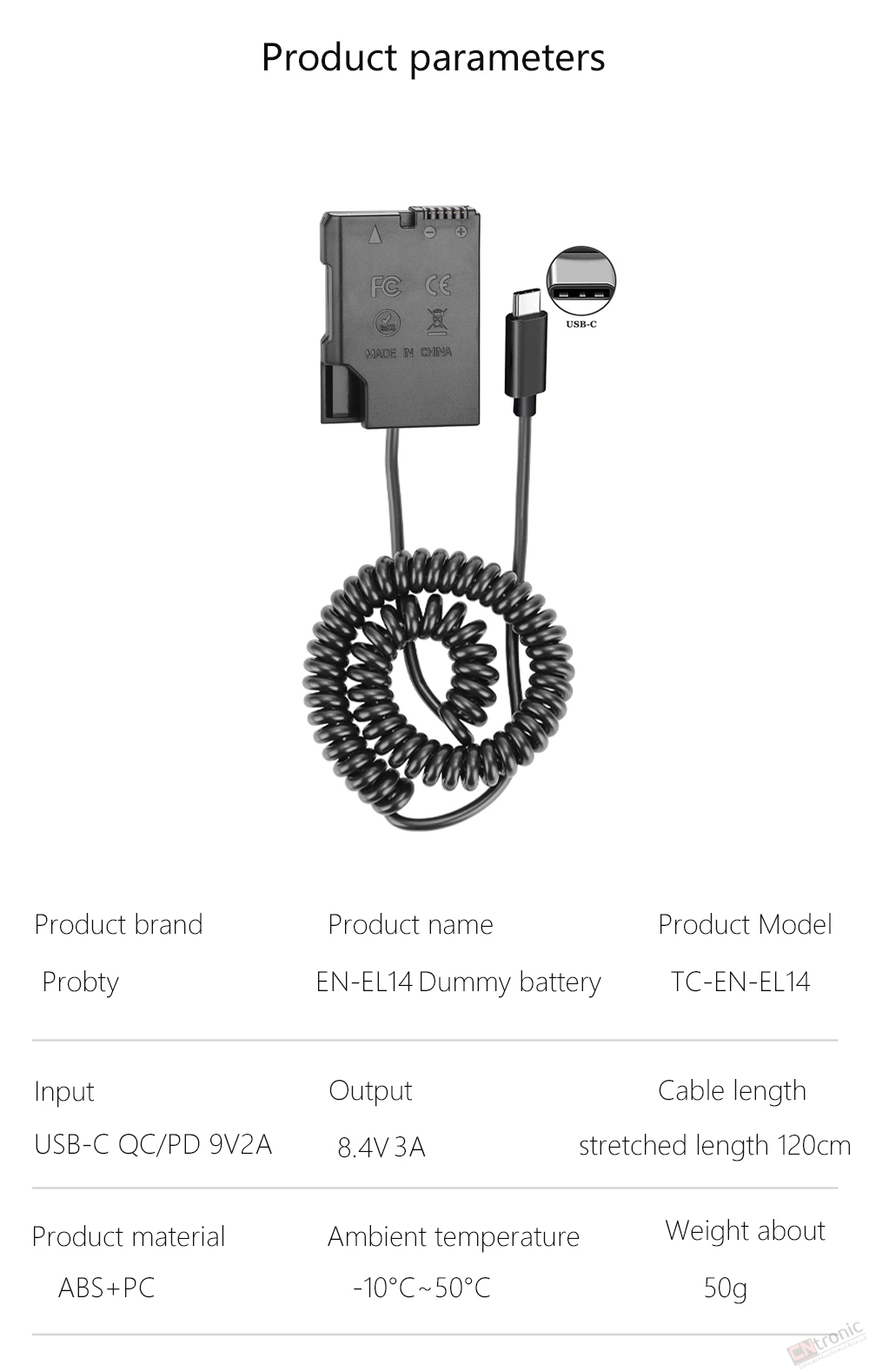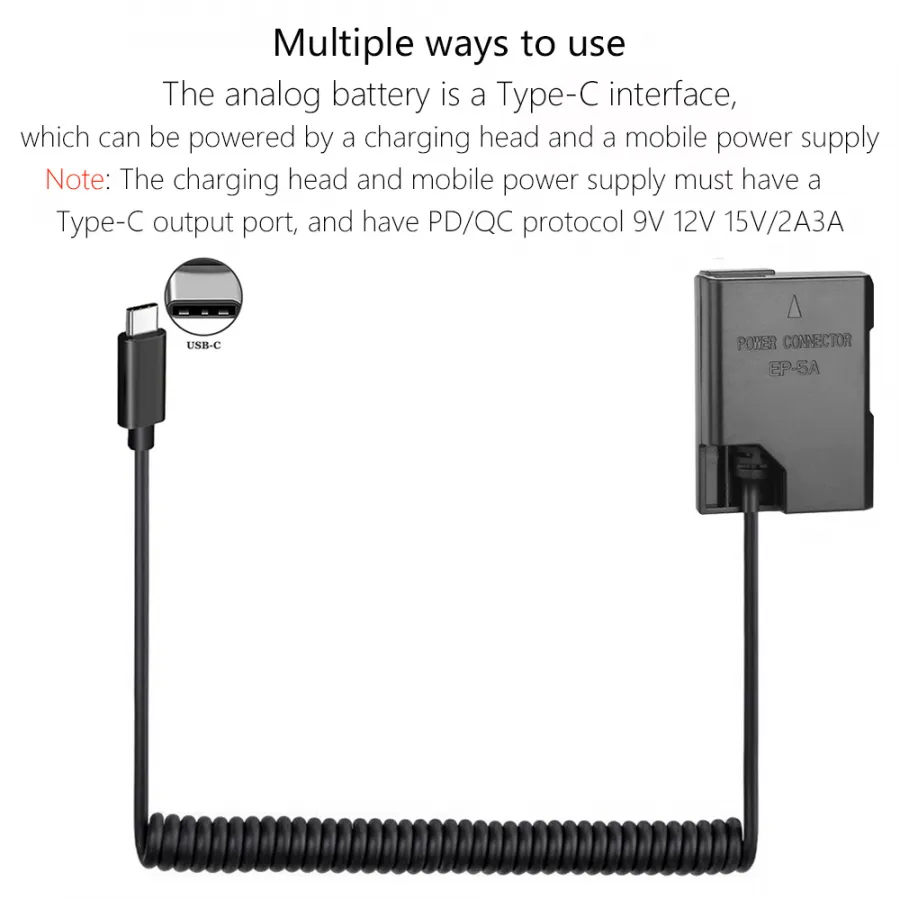 EP-5A USB-C Adapter kit Replaces Nikon EN-EL14 Battery, the dummy battery continuously provides unlimited power to
