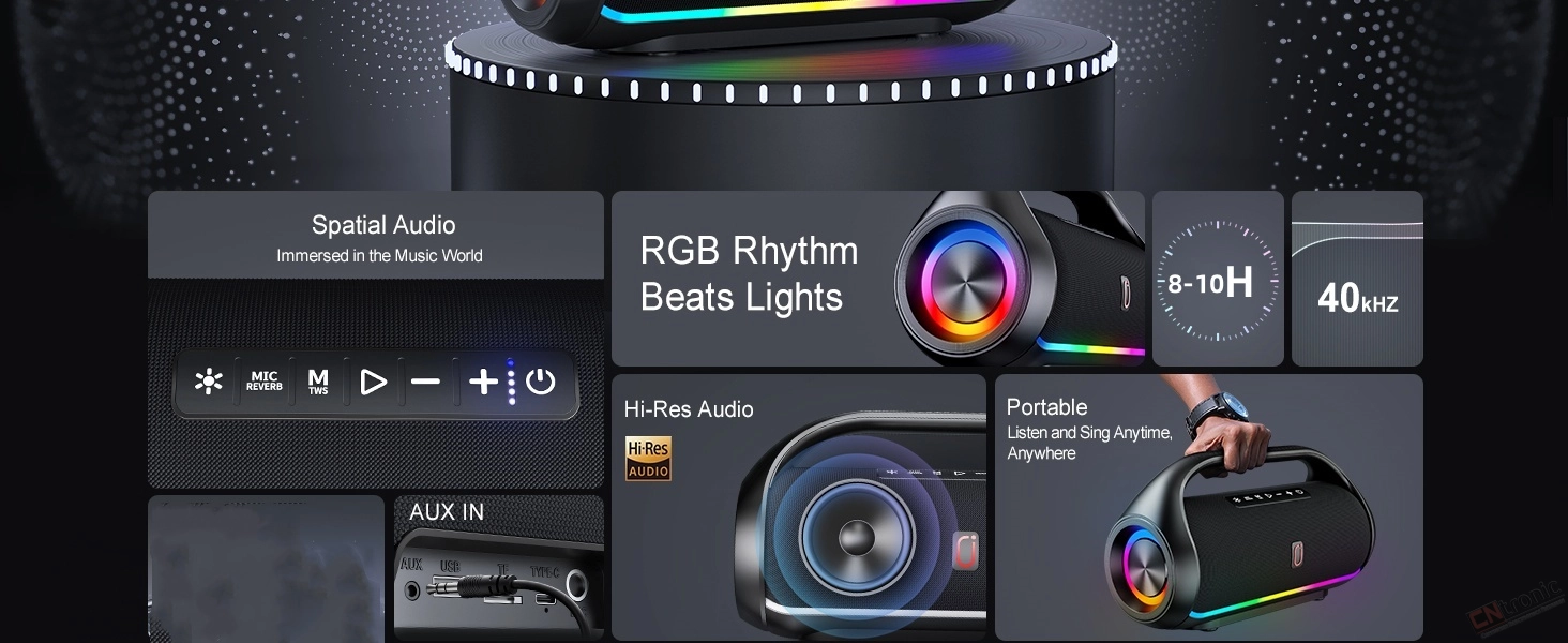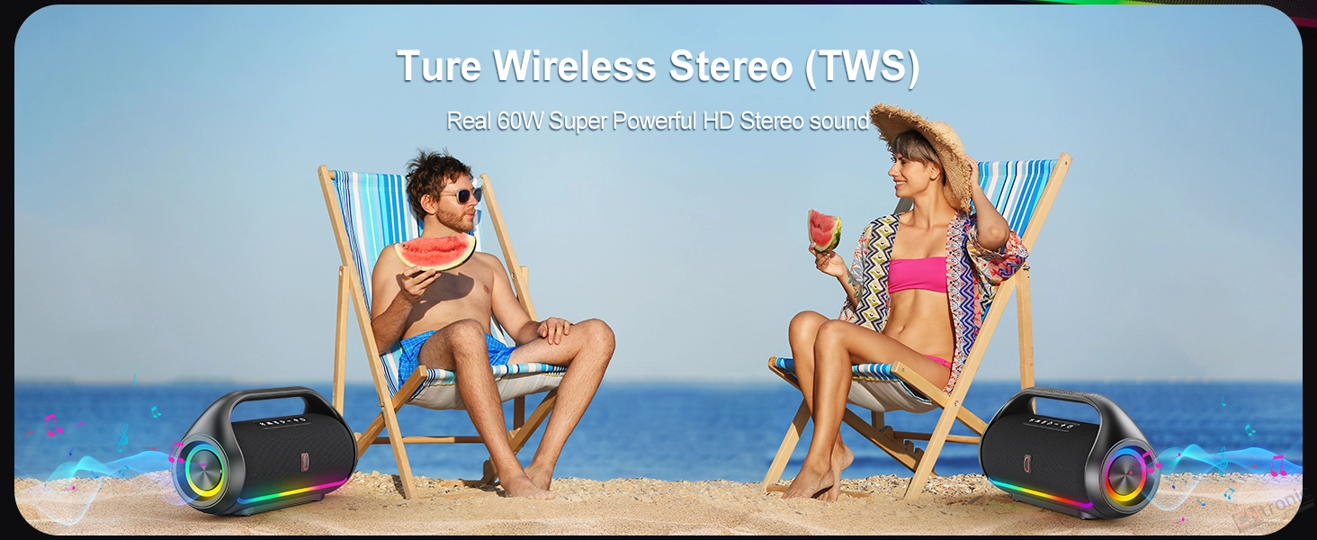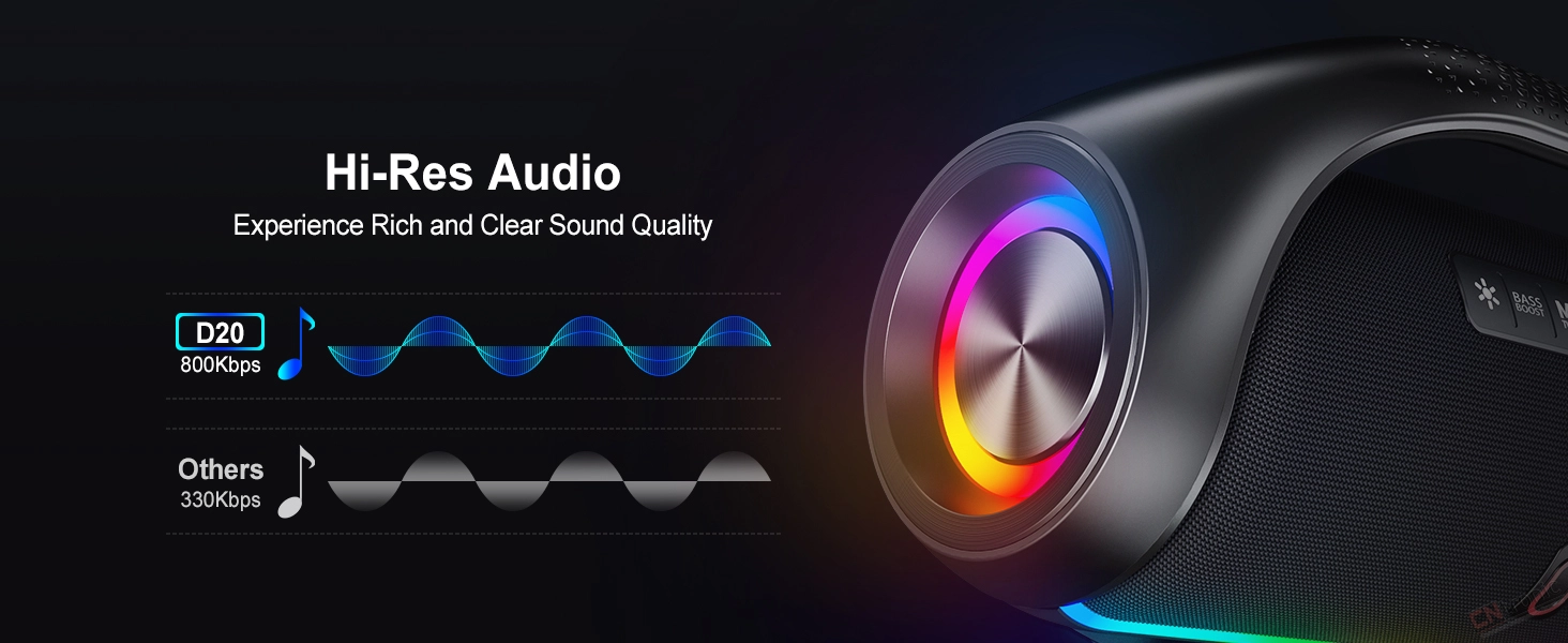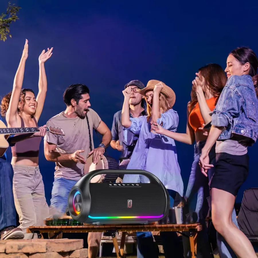 Immersive HD Stereo Sound Quality : Delivers rich, crystal-clear sound with impressive bass, perfect for any gathering. Highly restored audio sound with zero frame loss.Create a variety of atmosphere: The multi-colored dynamic LED lights dance to the beat of the music, creating a lively and immersive atmosphere.Dynamic LED lights that sync to the beat for a captivating visual experience (RGB lights also can be turned off manually).