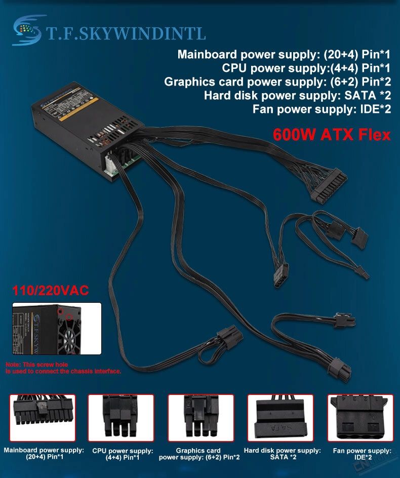 Flex 600W Modular Power Supply Small 1U Computer PSU Flex-ATX 500W for ITX mini PC Active PFC For POS AIO desktop 110V 220V