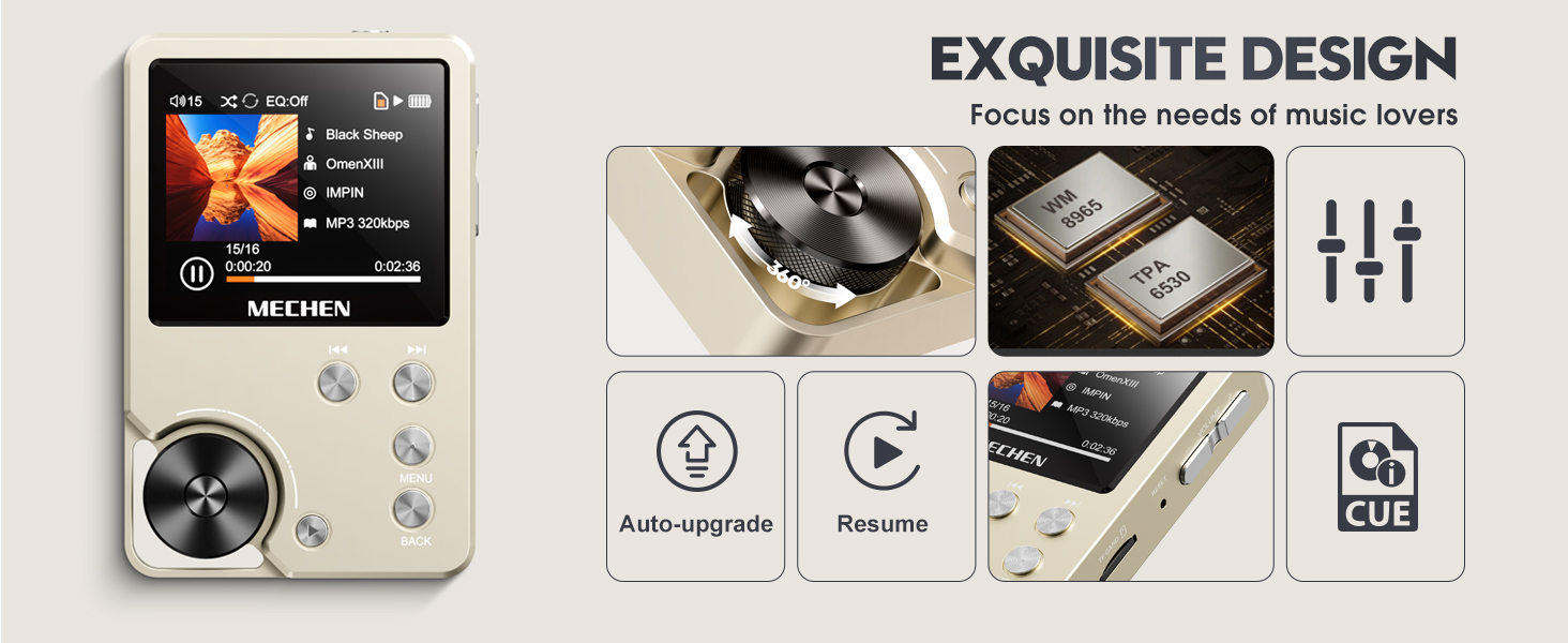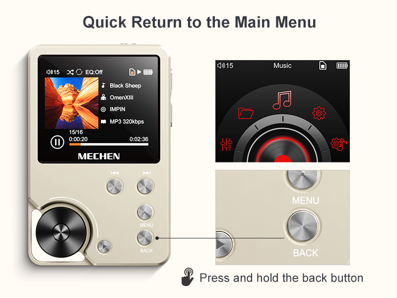 【Fashionable craftsmanship】The non-destructive music player is made of high-precision CNC aluminum alloy shell, which is elegant and portable, and does not leave fingerprints. The unique scroll wheel control wheel can quickly find the track function and is very responsive. The independent menu key and return key have a one-key lock screen function, which is easy to operate.