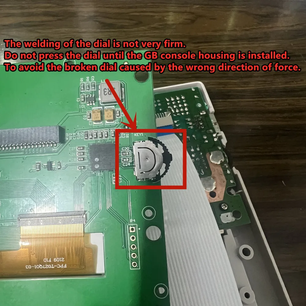 3.Do not press the dial until the GB console housing is installed.