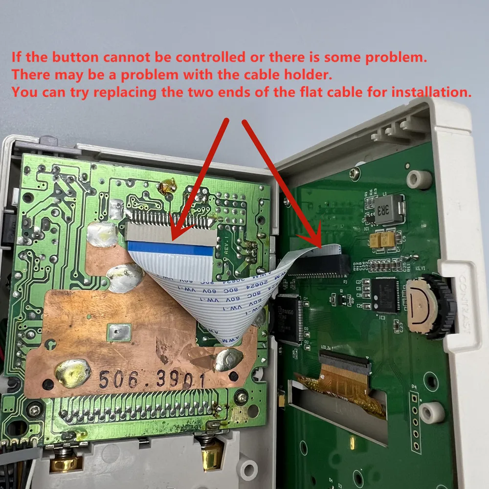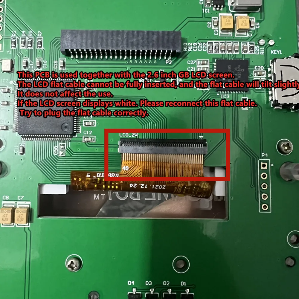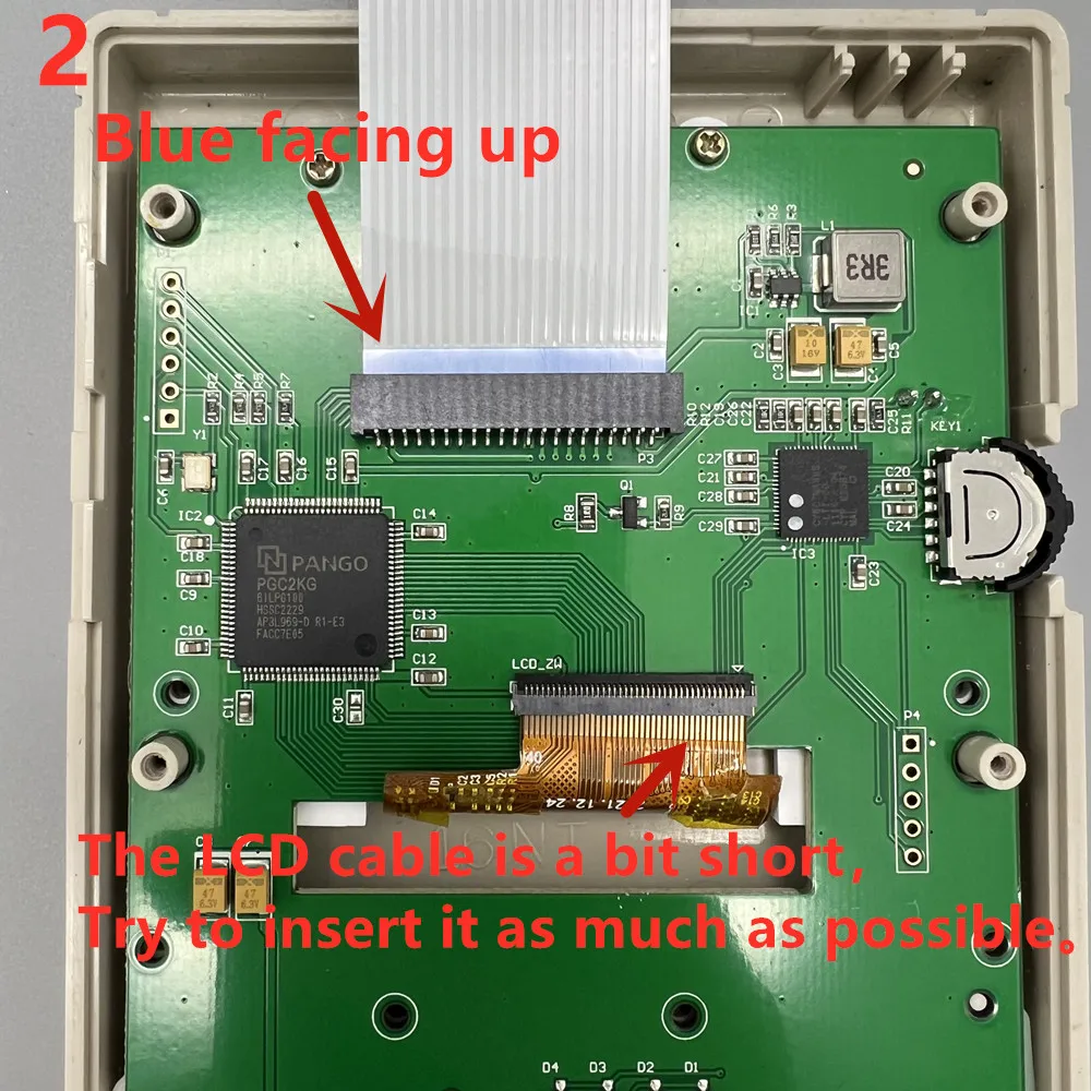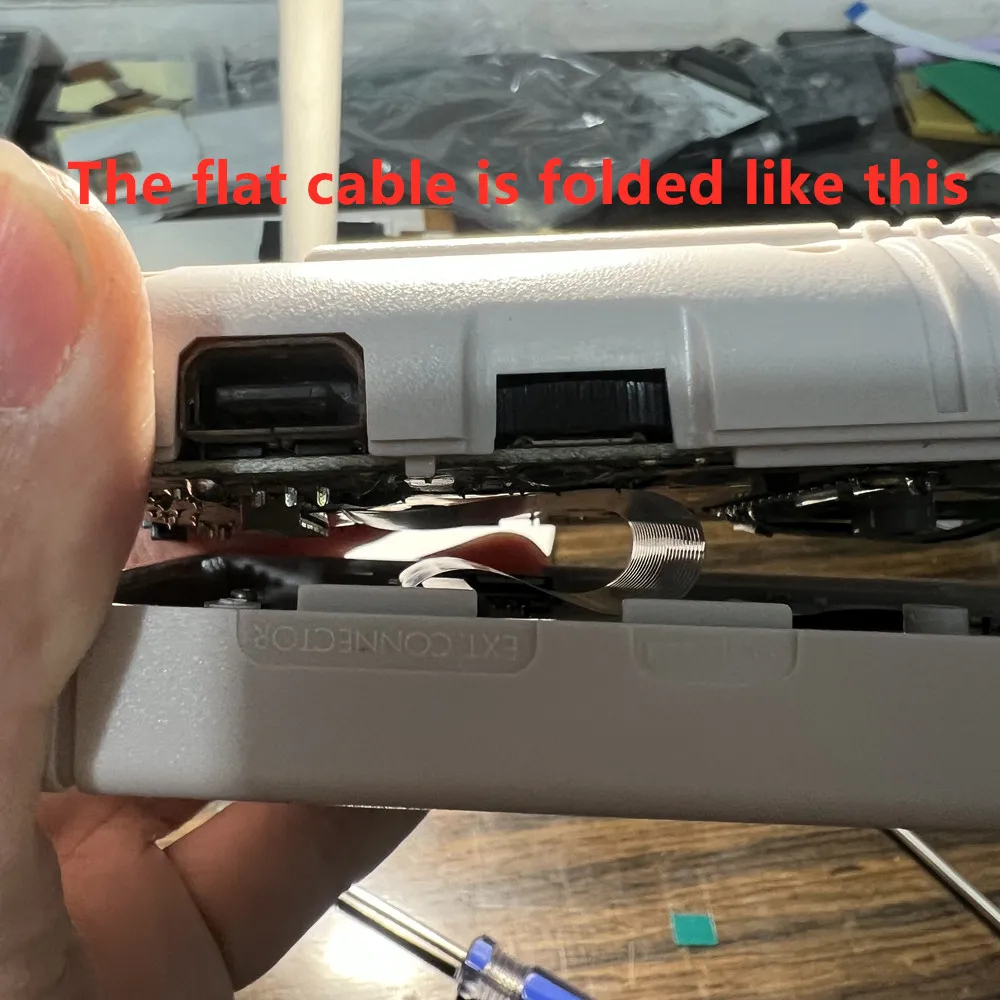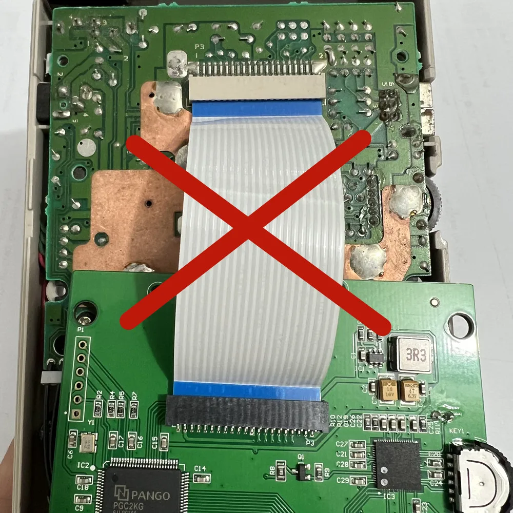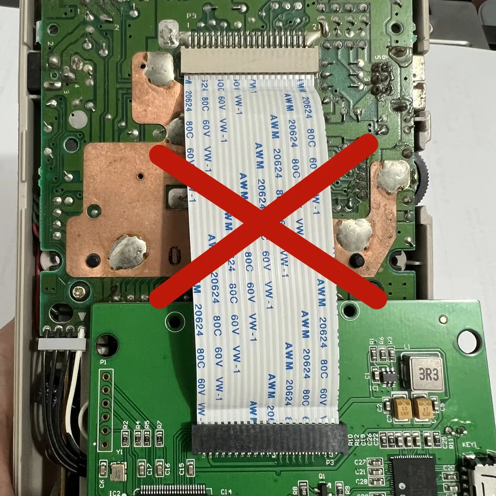Do not insert the same side of the cable at both ends into the cable holder. As shown below. Inserting a reverse cable like this will burn out the main chip of the LCD screen!!!