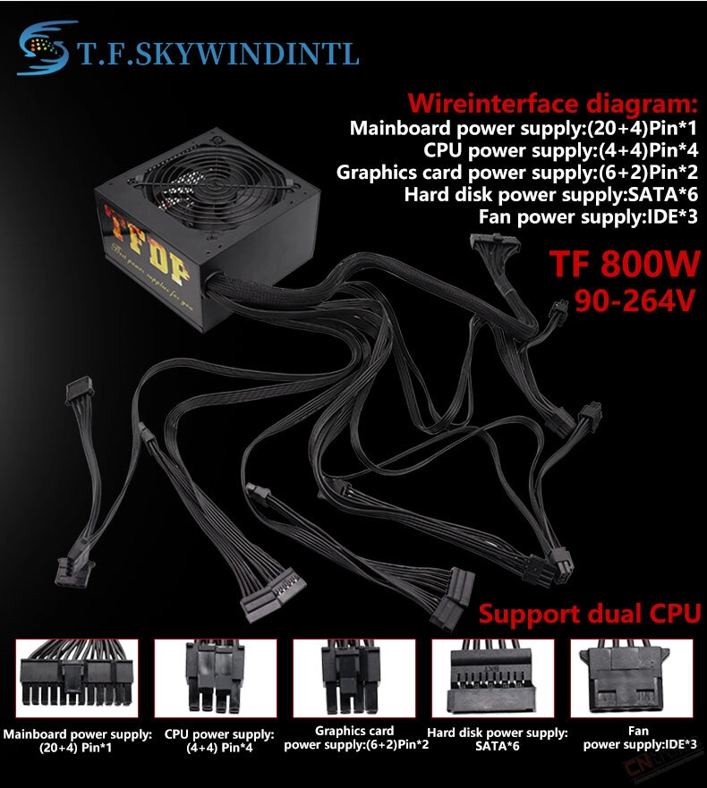 800W ATX Gaming PC PSU Power Supply 120mm Fan 6 Pin PCI Exp 8 pin CPU