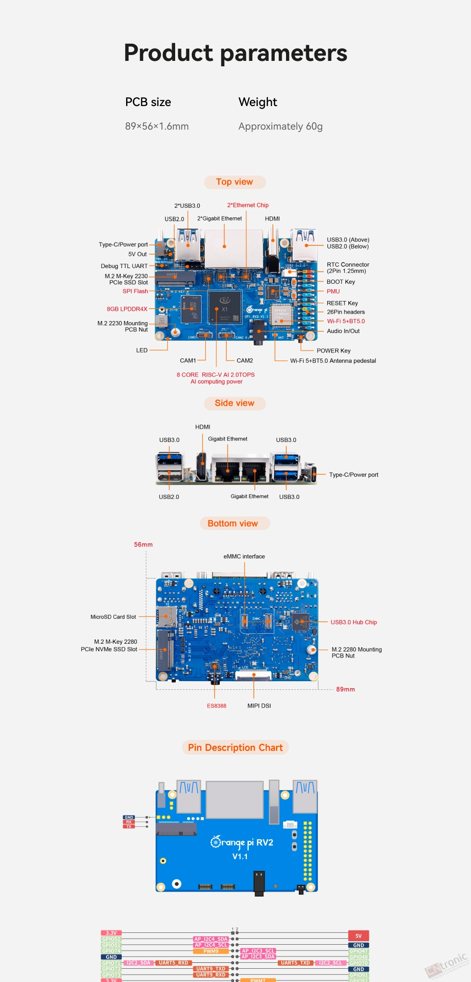 Orange Pi 3 LTS Single Board Computer 2GB RAM AllWinner H6 8GB EMMC Development Board Computer Run Android9.0 Ubuntu Debian OS