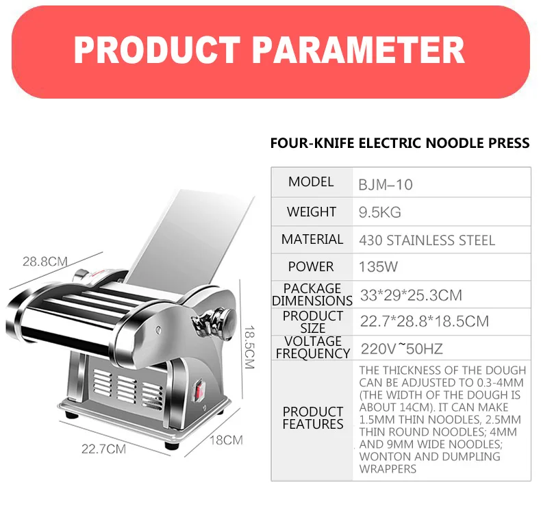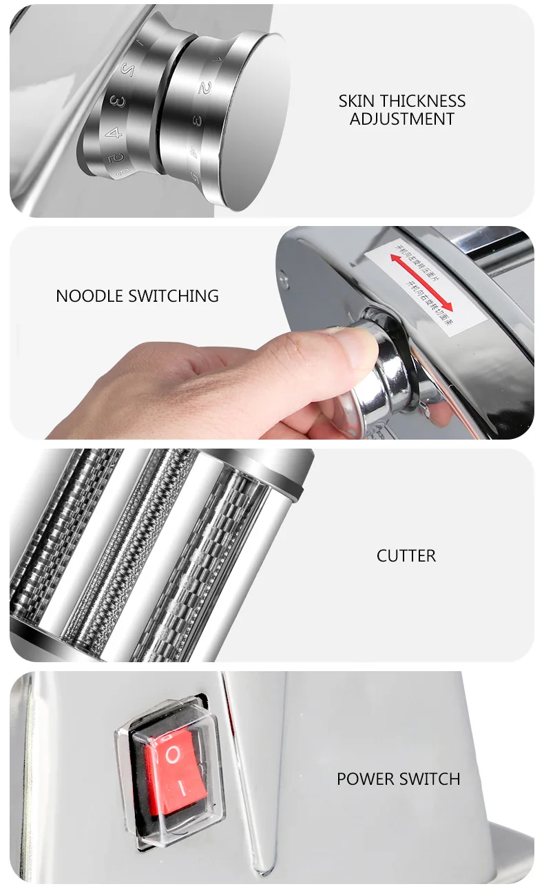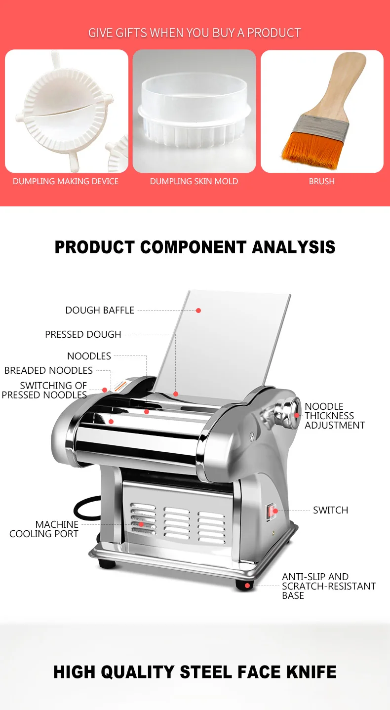 Electric Noodle Machine 2200W Stainless Steel 300mm Width Roller Dough Press Pasta Commercial Kneading Dumpling Noodles Maker