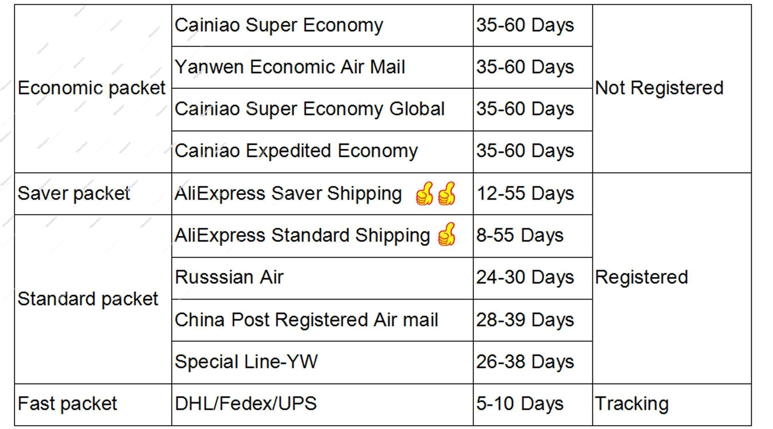 Packages from our warehouse in China will be shipped by ePacket or EMS depending on the weight and size of the product. Packages shipped from our US warehouse are shipped through USPS.