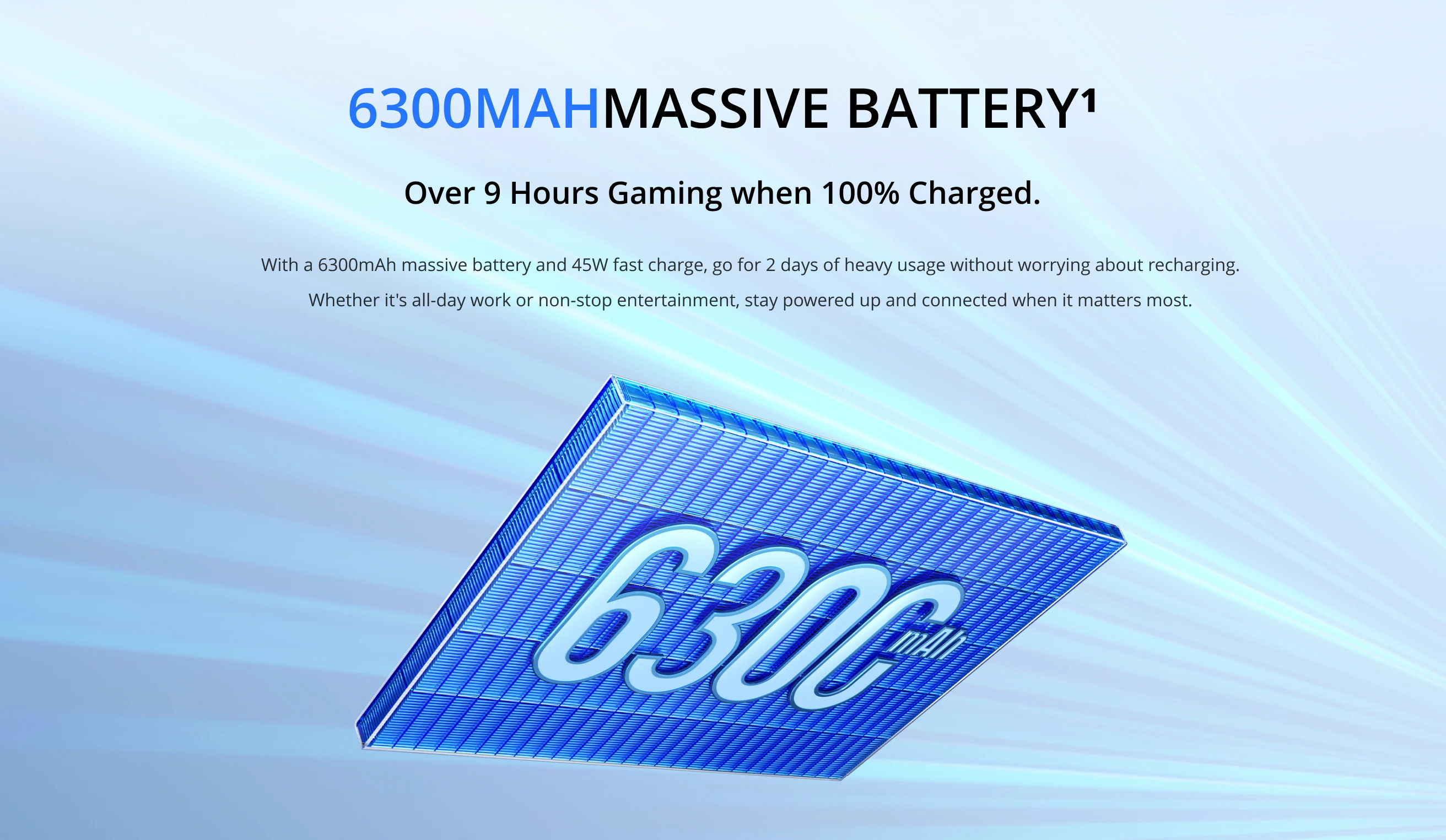 Battery: 6300mAh Massive Battery, 45W Fast Charge