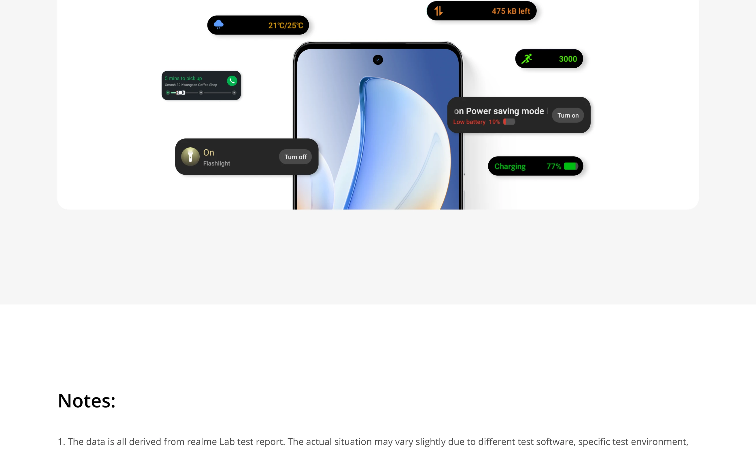 * Charging data is from realme Lab, the actual data is affected by the testing environment.