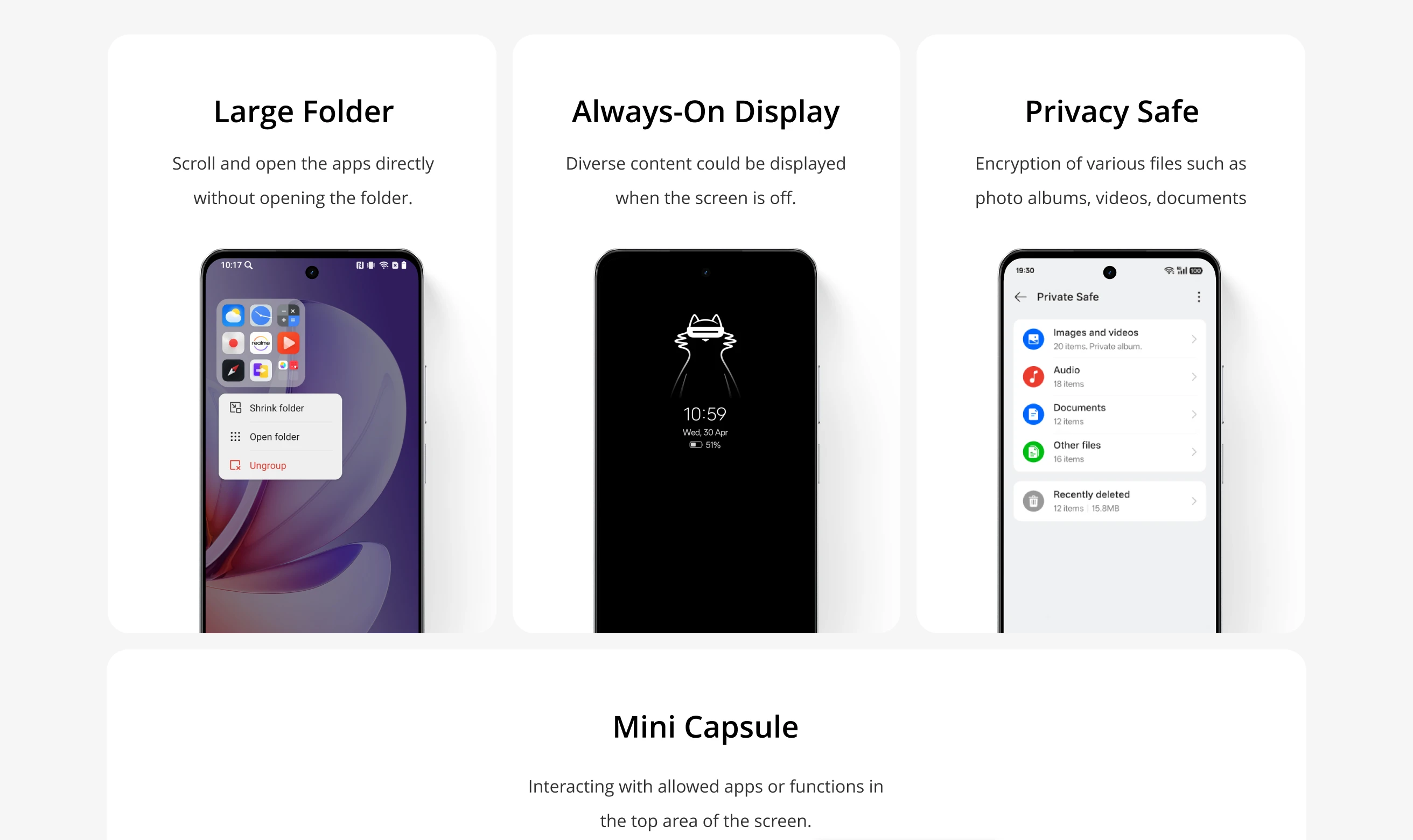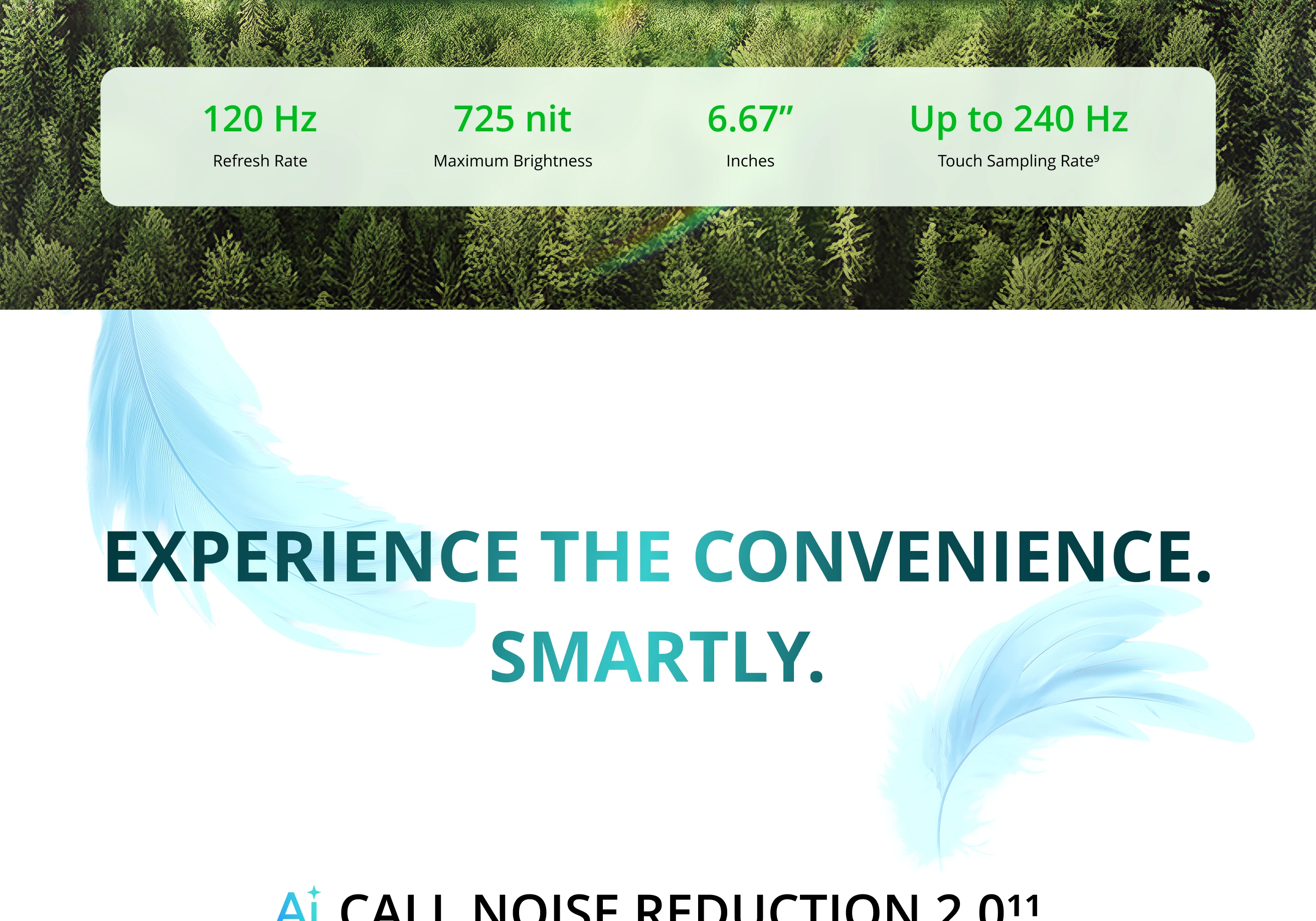 Other: NFC; IP64 Water Resistance; 7066mm² Heat dissipation area; OReality Audio; Always-On Display