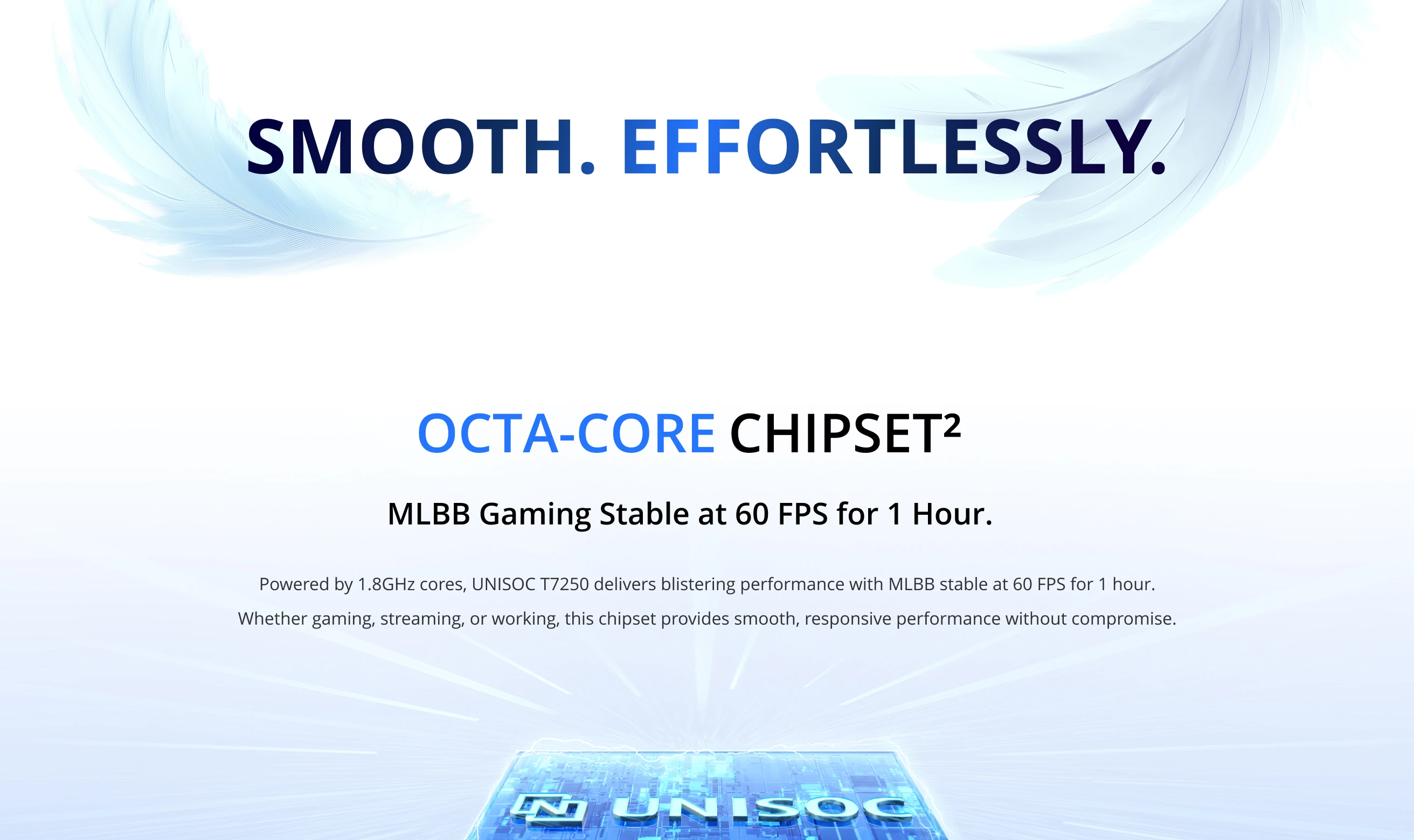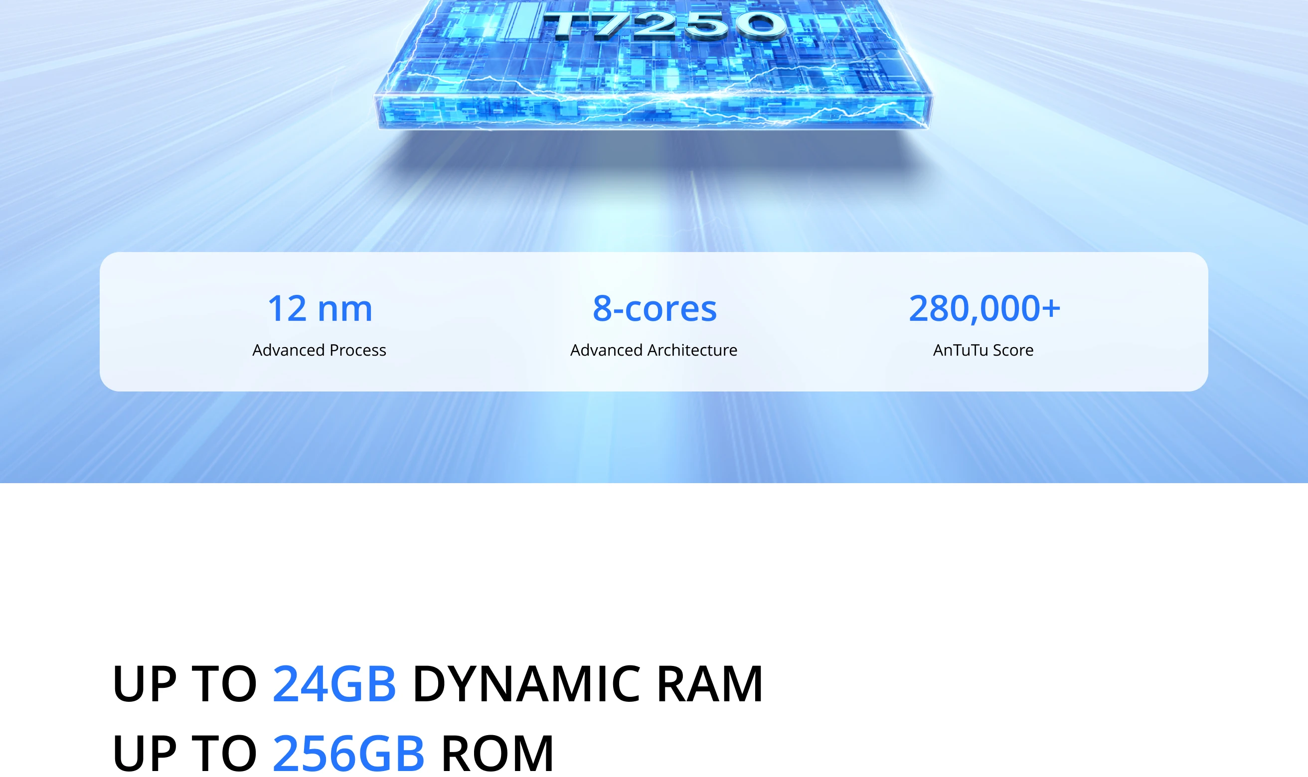 CPU: UNISOC T7250 Chipset, 12nm Process, 8 Cores, up to 1.8 GHz