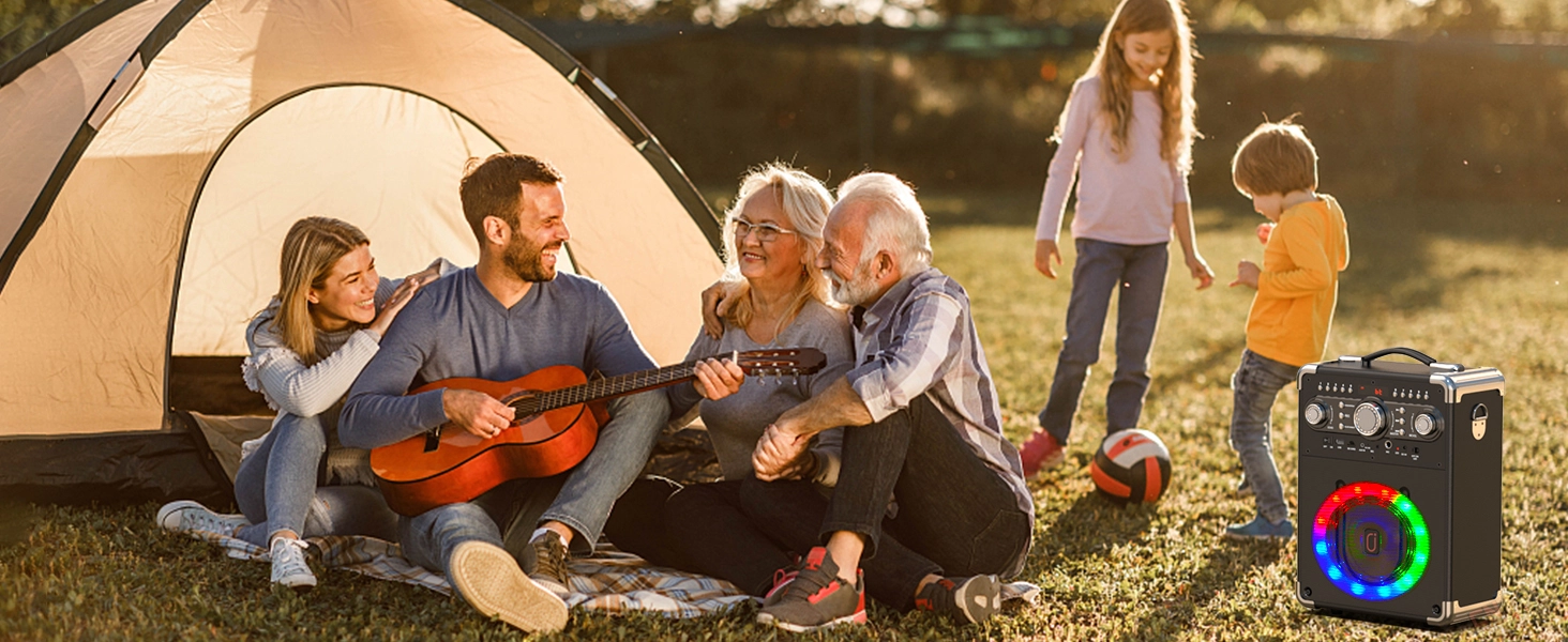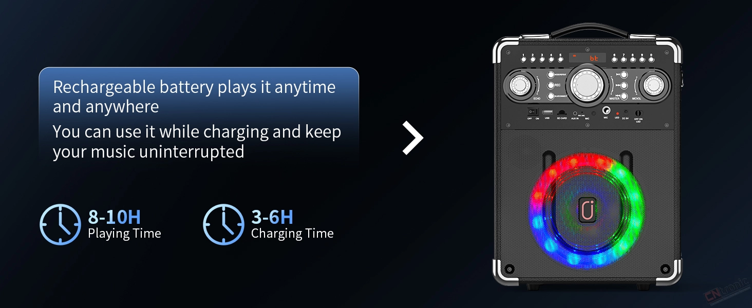 Portable Party Powerhouse:This ultra-light speaker features a reinforced leather handle for one-handed portability. Sing non-stop for 8-12 hours on a single charge,Recharge fully in 3-4 hours with USB-C fast charging.Host instant parties at parks, rooftops, or road trips