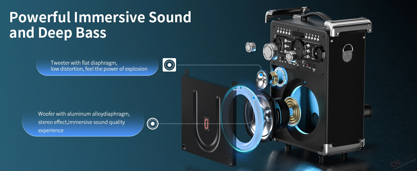 Immersive HD Sound: 6.5-inch woofer and 2.4-inch tweeter deliver crisp vocals and thundering bass. Advanced bass and treble controls allow you to fine-tune the sound to your preference. Enjoy a distortion-free karaoke experience, even at high volumes