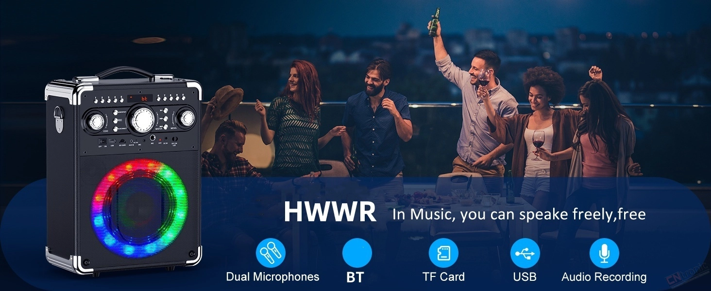 All-in-One Karaoke : Unleash your inner rockstar with this versatile karaoke machine! Featuring a built-in speaker, 3 wireless microphones for duets, easy-to-use controls, and vibrant LED lights. 6-in-1 Wireless Connectivity Bluetooth 5.1, USB/TF/AUX ports, FM radio, and 3 wireless mics. Perfect for karaoke, parties or outdoor camping
