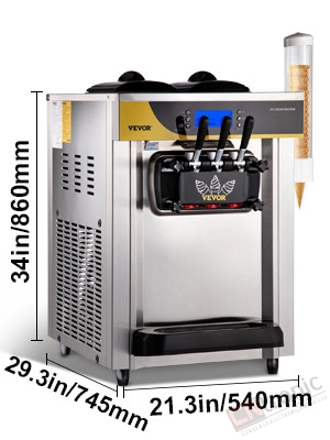 Well-Designed for Wide Uses: Designed in a size of 29.3"x21.3"x34", our countertop ice cream maker can perfectly fit into commercial places. The stainless steel construction ensures enhanced durability and an eye-pleasing appearance. This unit is widely applicable for snack bars, cafés, bakeries, fast food chains, restaurants, buffets, etc.