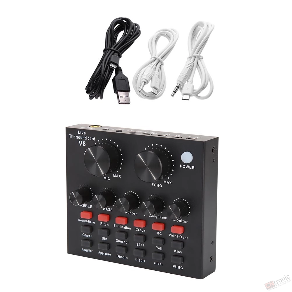 V8 Audio External USB Headset Microphone Live Broadcast Sound Card for Mobile Phone Computer PC