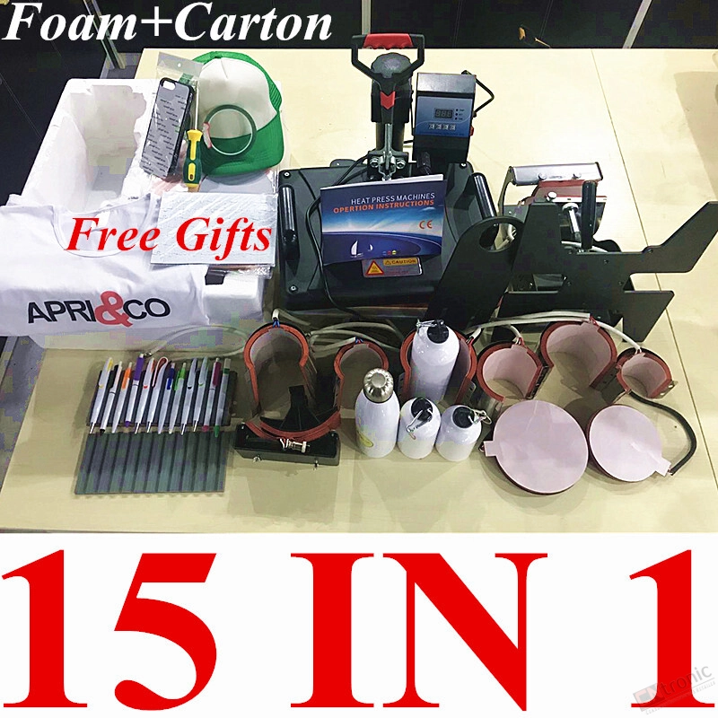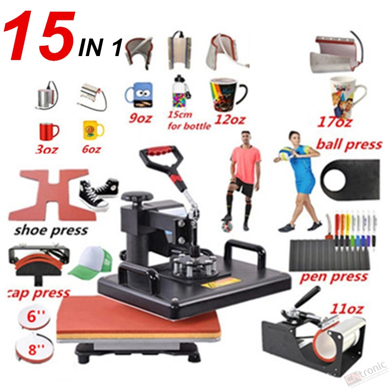 15 In 1 Combo Muntifunctional Sublimation Heat Press Machine T shirt Heat Transfer Printer For Mug/Cap/football/bottle/pen/shoe