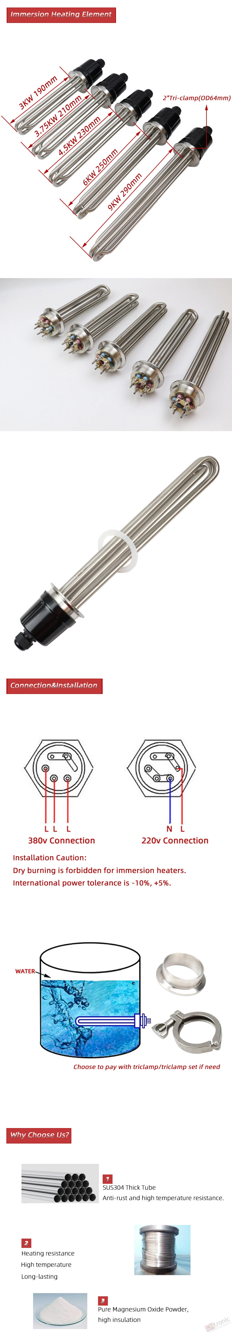 LJXH DN25 DC 12V/24V/48V 300W 600W Heating Element For Solar Water Heater 1inch Tubular Heaters All 304 Stainless Steel