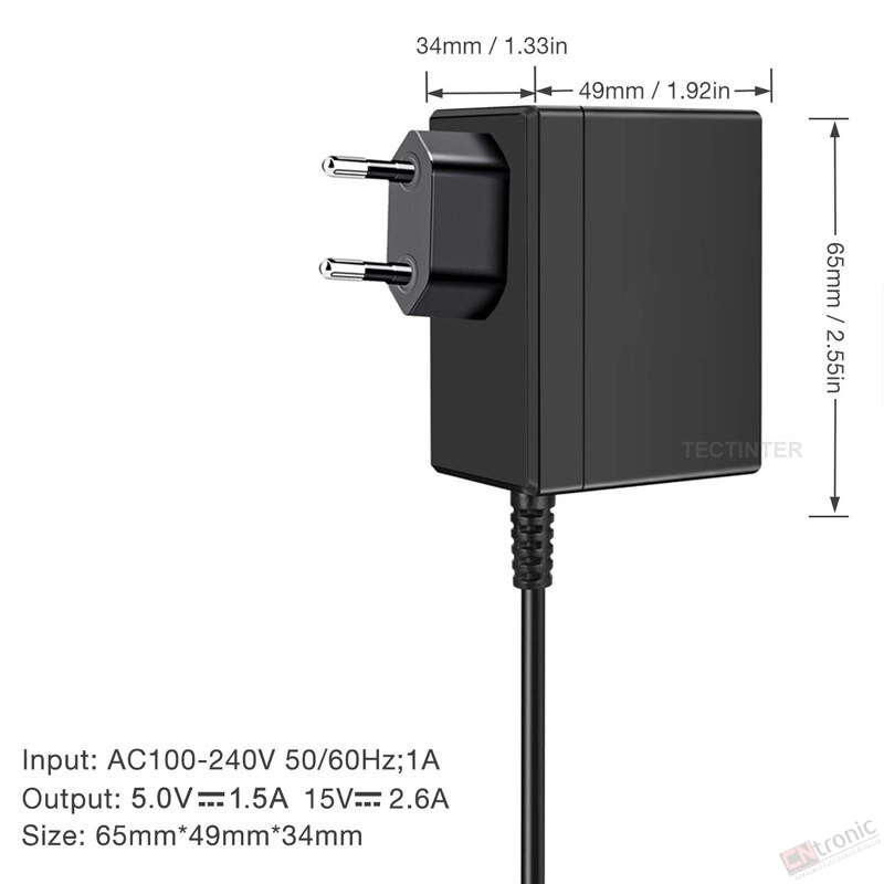 Ultra-long 5 feet (about 1.5 meters) USB-C integrated cable, 15V-2.6A output provides enough power, when you use the base in TV mode, it is a great alternative or spare AC adapter for Nintendo Switch.