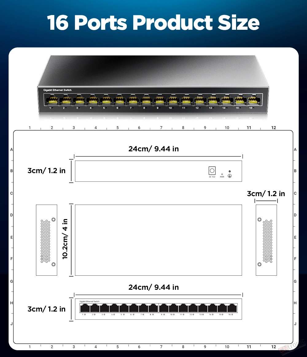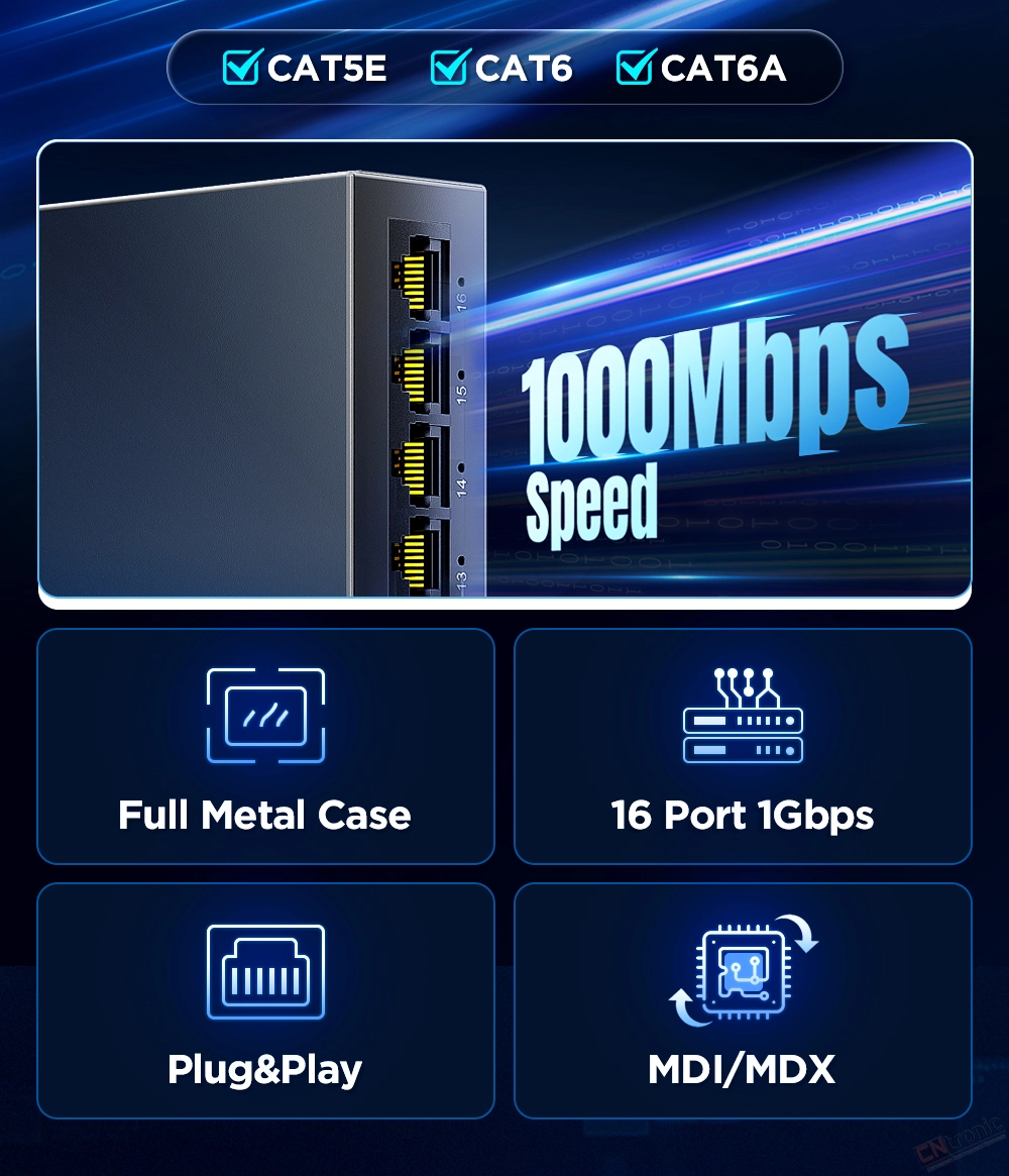 Ethernet: 16*10/100/1000Mbps RJ45 Ports