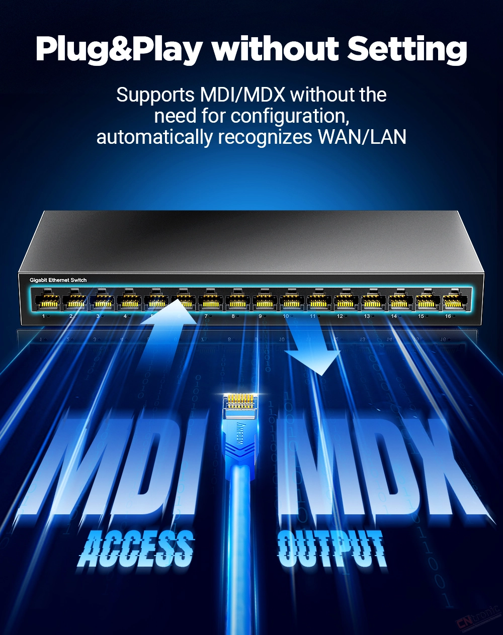 Supports MDI/MDX without the need for configuration, automatically recognizes WAN/LAN