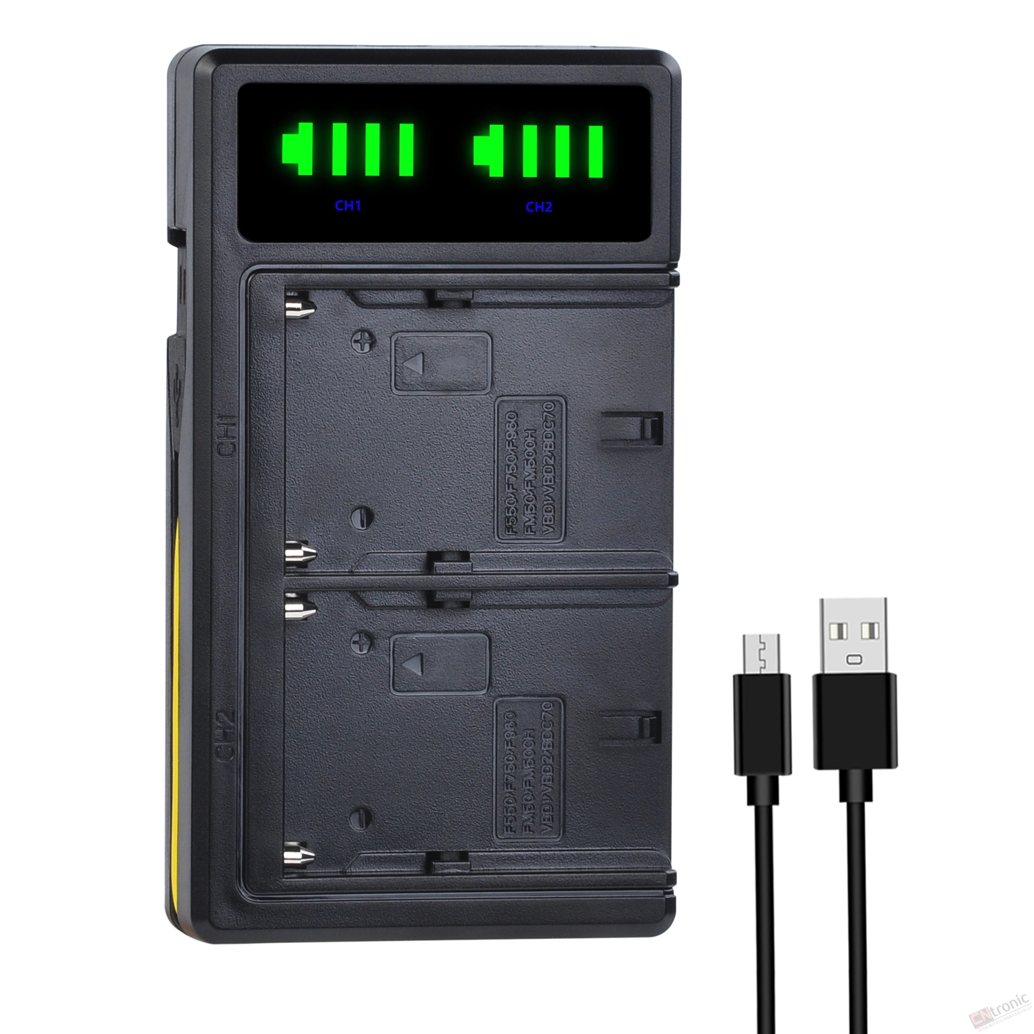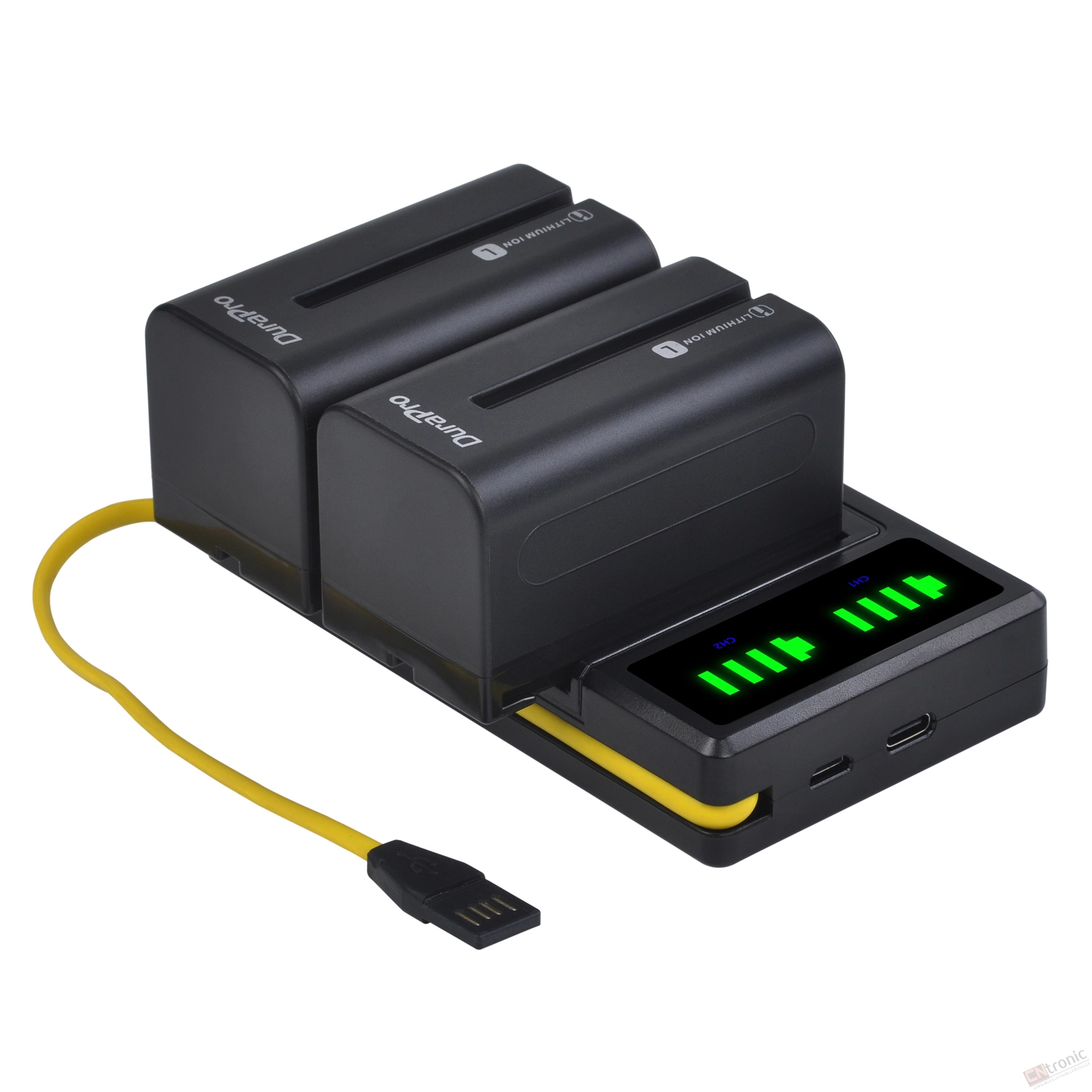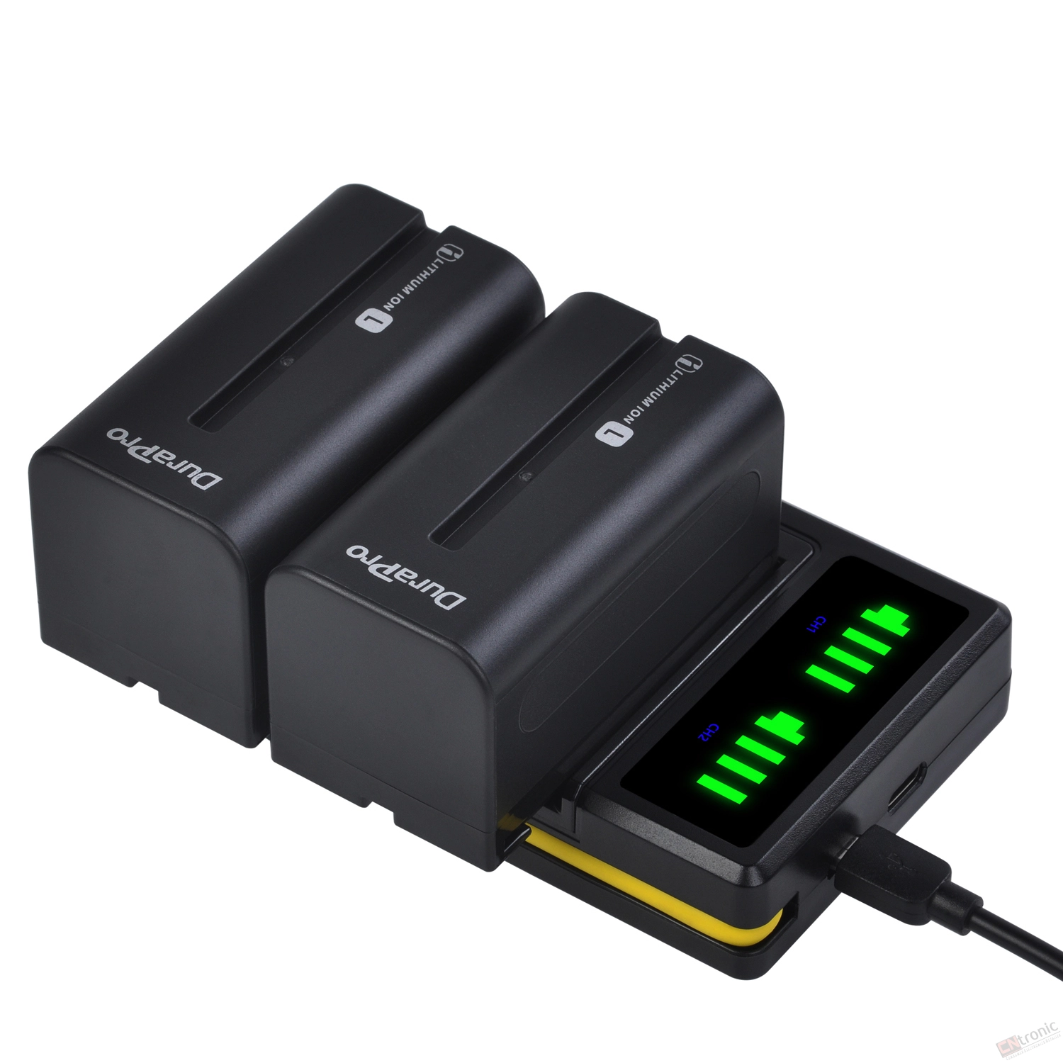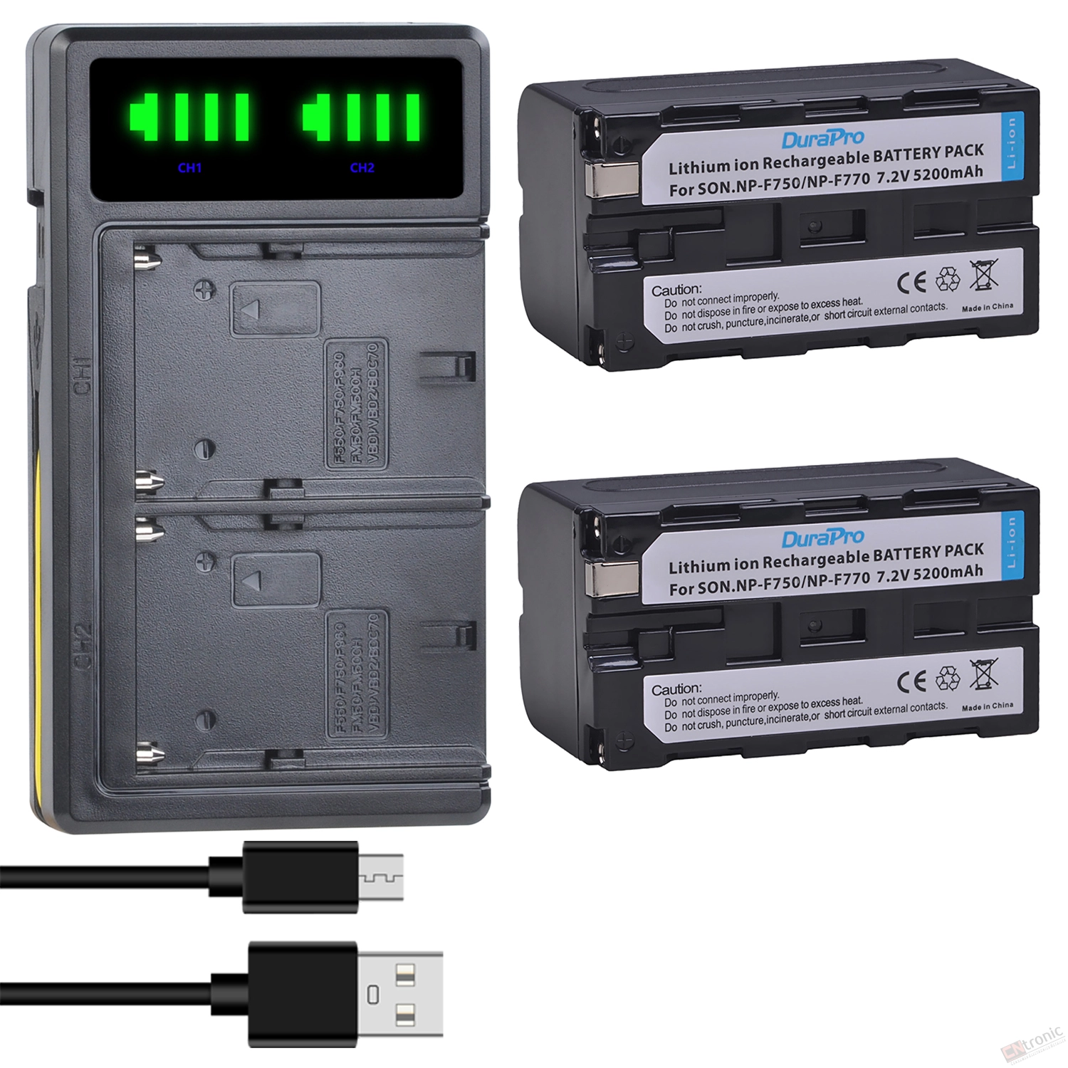 DuraPro 5200mAH NP-F750 NP-F770 Li-ion Camera Battery + LED USB Dual Charger with Type C Port for Sony NP F970 F960 F550 F570 QM91D CCD-RV100 TRU47E