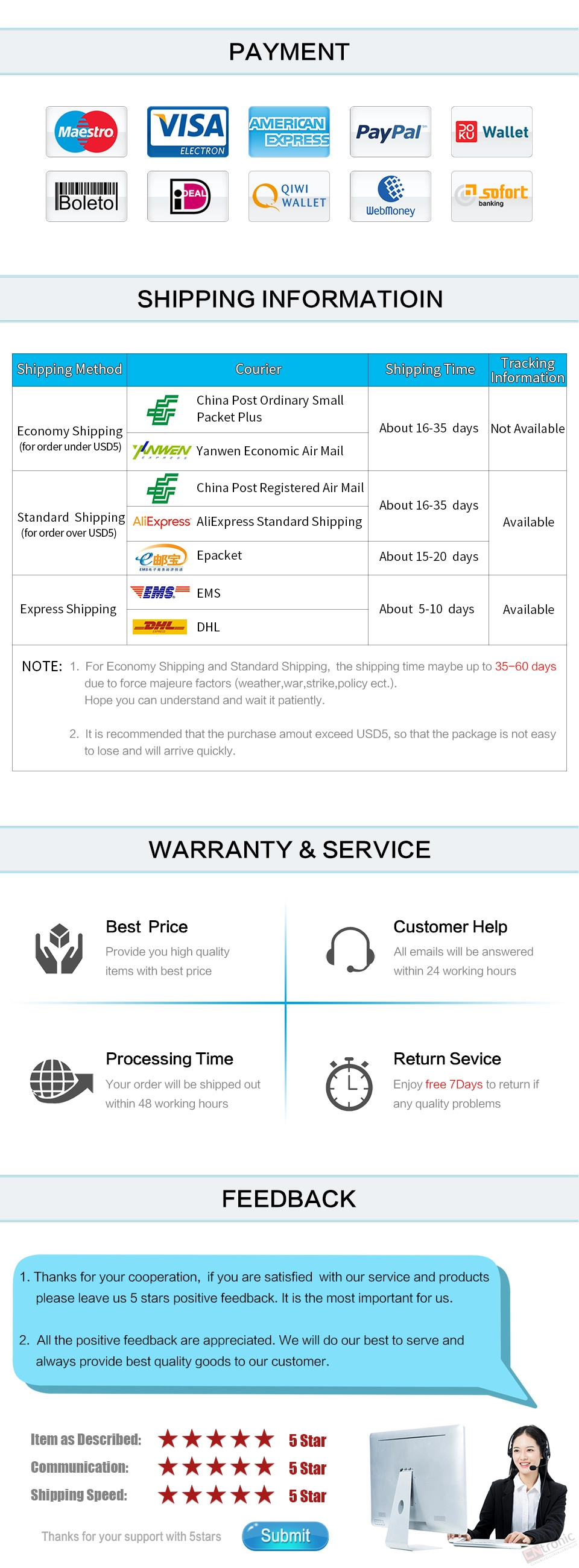 If you can't find the estimated delivery time on the product detail page, you can look at the following table for reference.