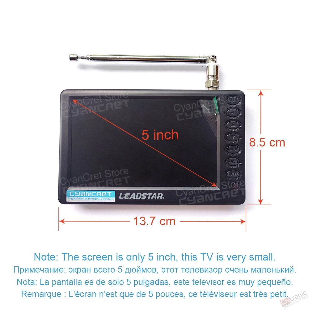 LEADSTAR Pocket TV D5 5 Inch DVB-T2 ATSC TDT Digital and Analog Mini Small Car Television Portable TV Support USB TF MP4 H.265 AC3