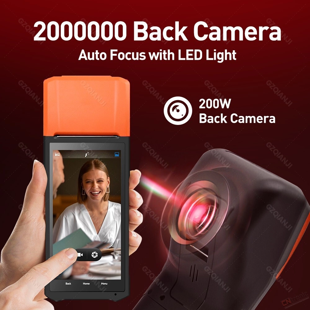 Intelligent payment terminal device performs well as a receipt printer and camera and supports 4G, WiFi, and BT4.0 networks. And 5M autofocus camera can support scan and recognize 1 Dimension and 2 dimension barcodes. Plus 1D CCD /2D barcode reader which recognizes the code faster.