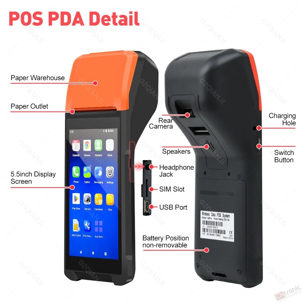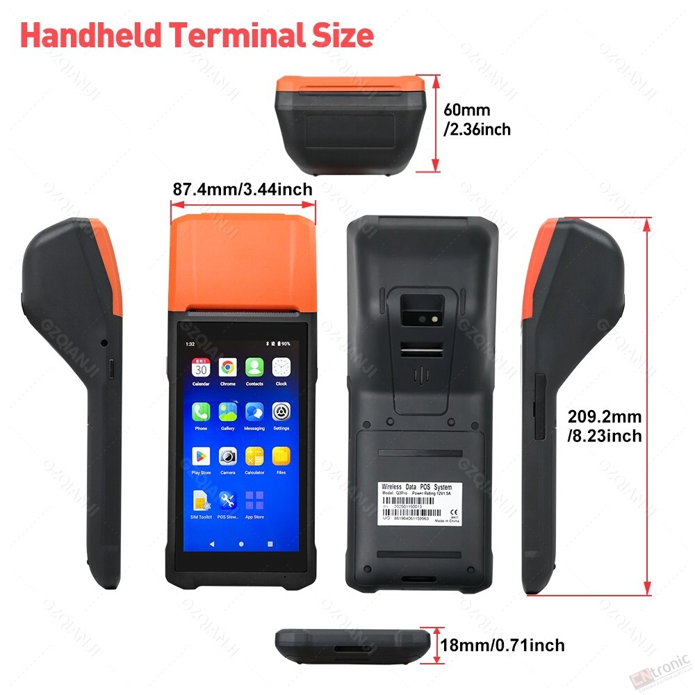 5.5" Touch Screen PDA Printer Supports 3G/4G WiFi BT4.0 USB OTG Bluetooth, Handheld POS Machine Terminal Printer
