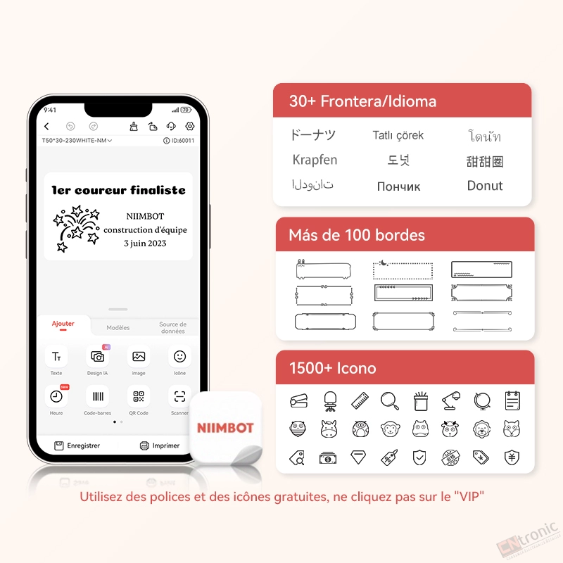 Our free NIIMBOT APP have functions like automatic templates matching, scan, image recognition, batch printing, serial number are offered, 20+ fonts, 1000+ icons, 100+ borders are provided for custom label designs.