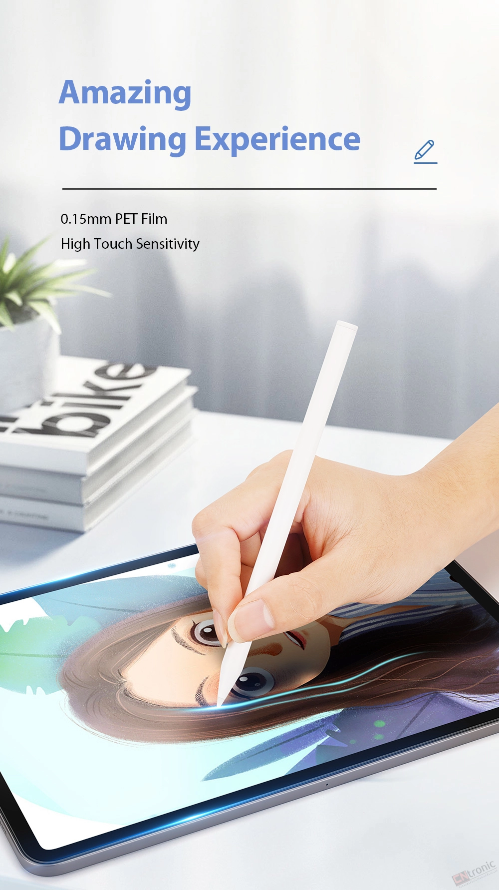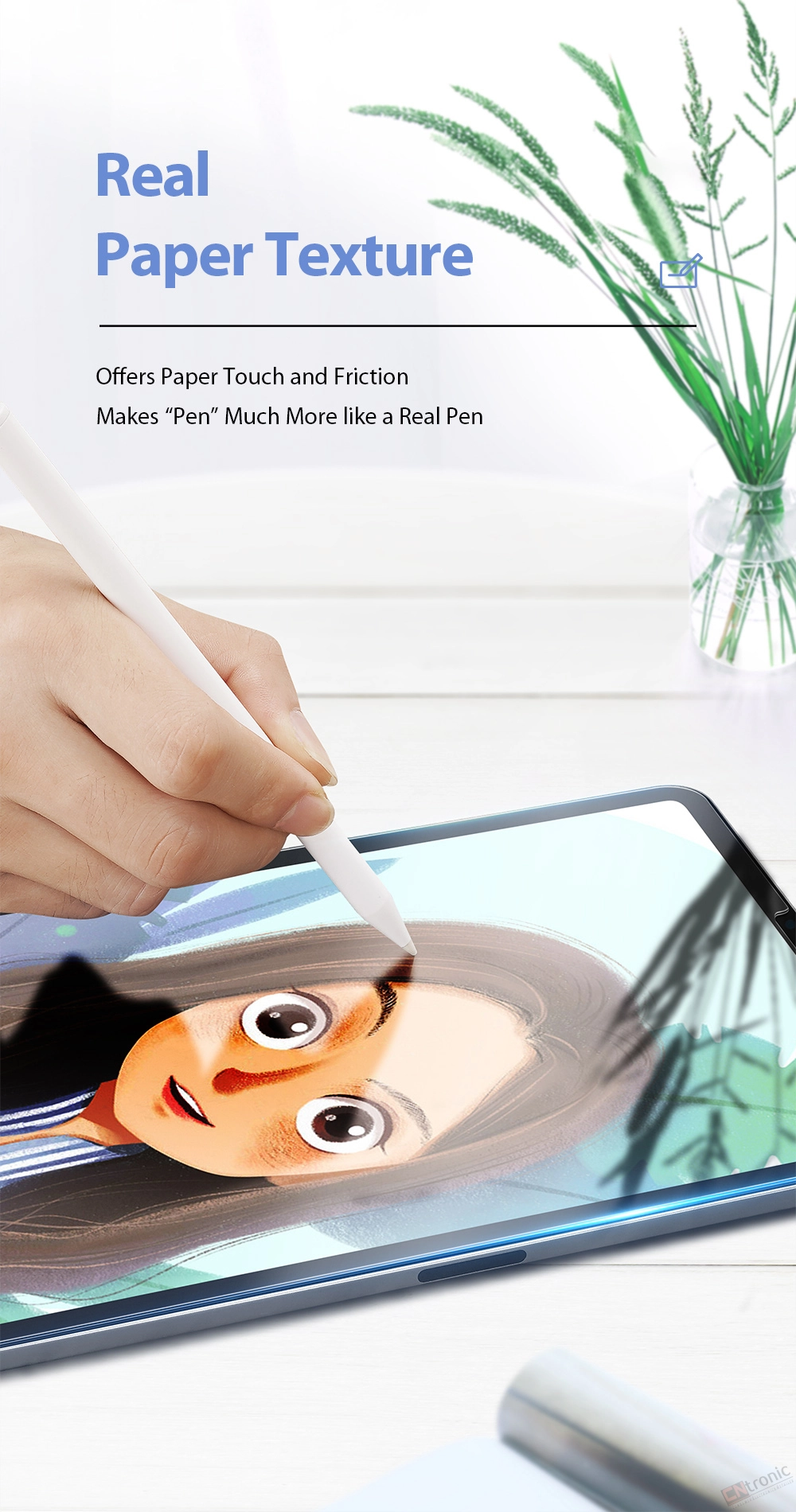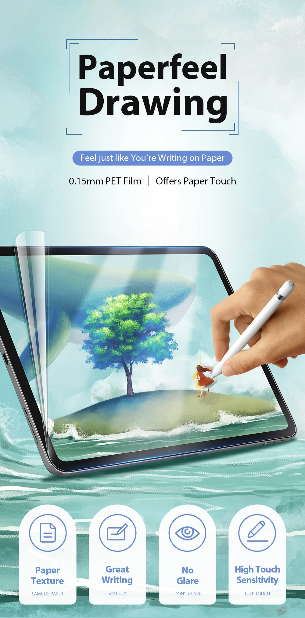 -Paper texture PET film touch like paper, draw like paper, when writing or drawing there is no slippery surface just to do the better control.