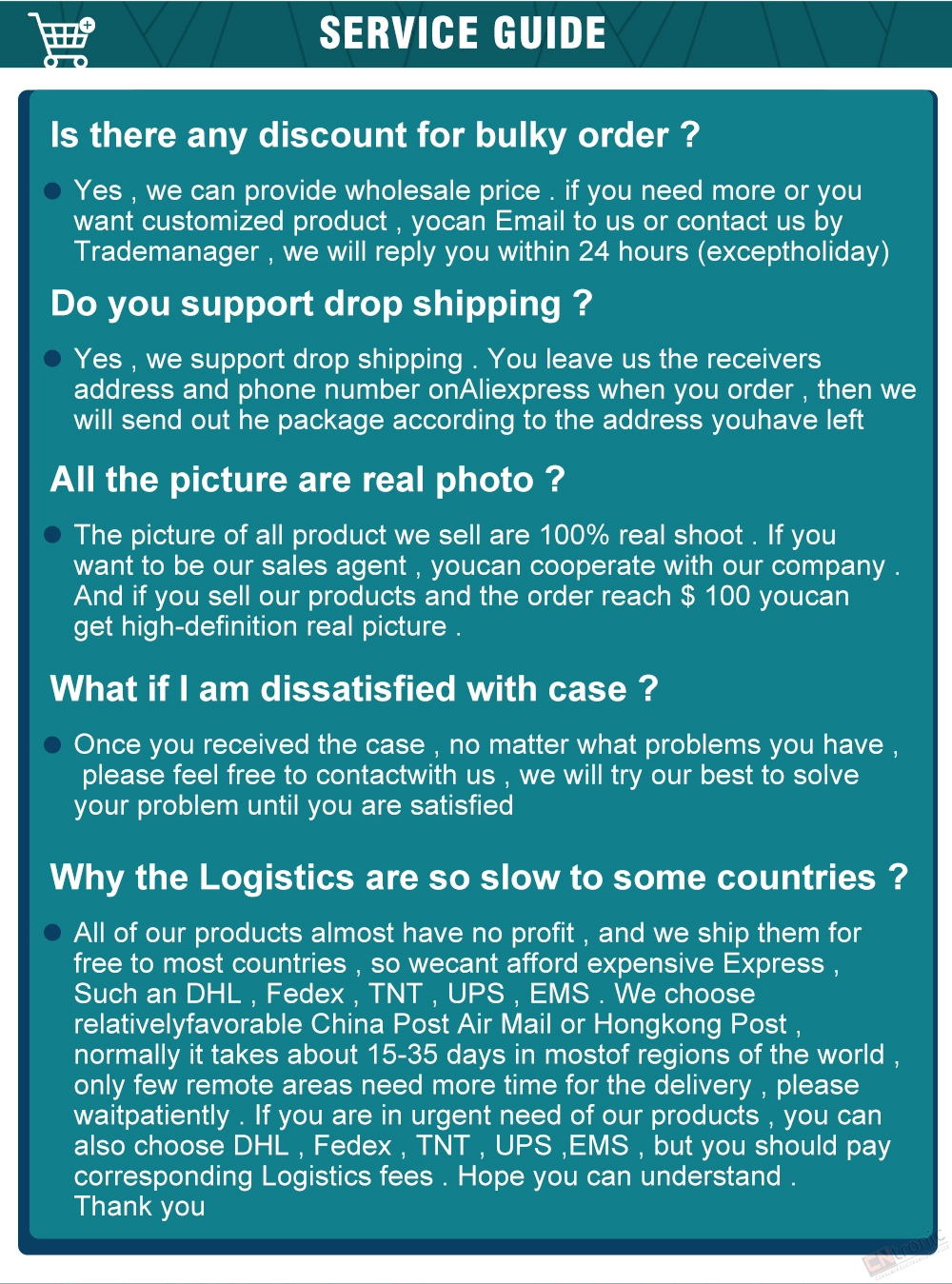 If you have any other questions, please contact us and we will do our best to help you out.