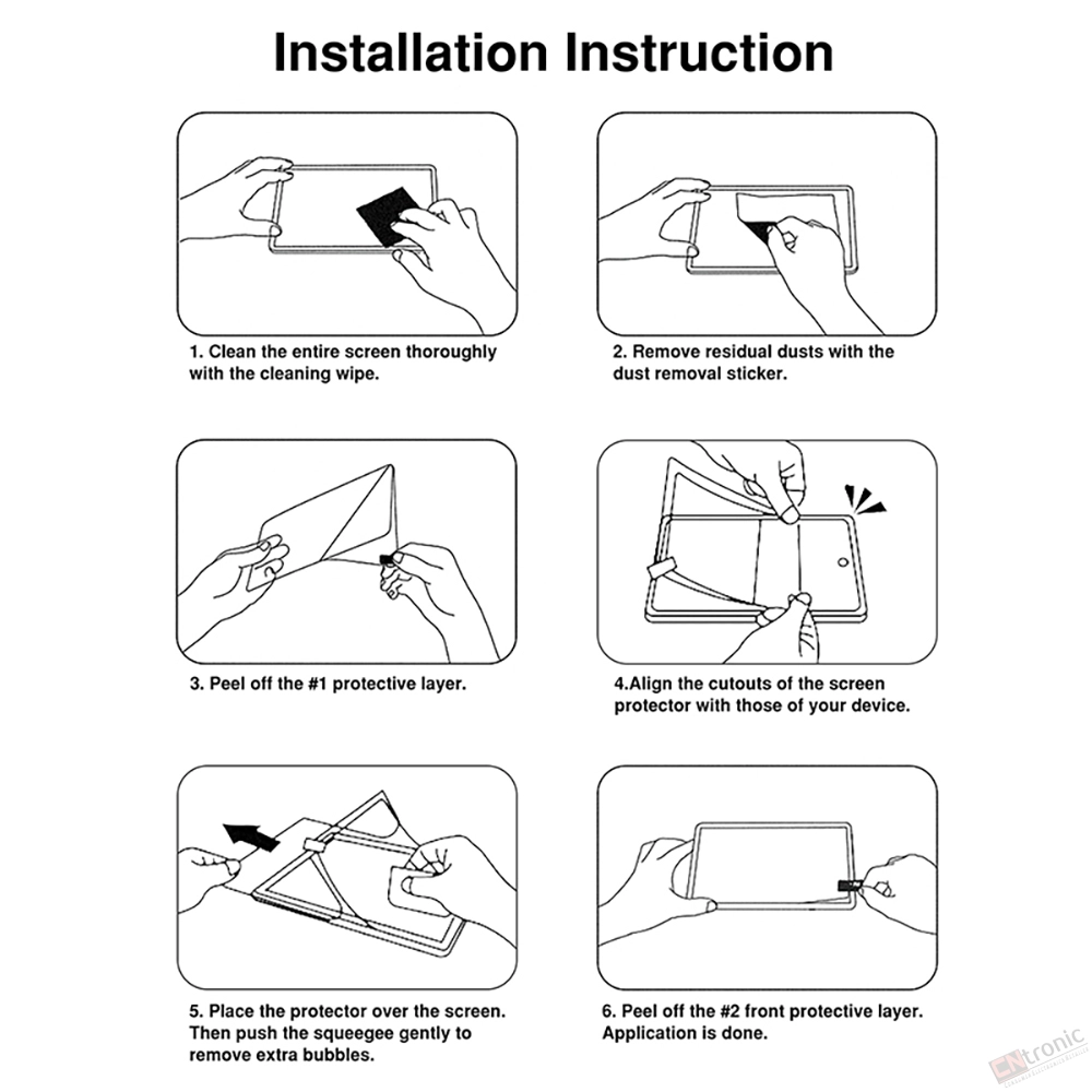 1. Clean the entire screen thoroughly with the cleaning wipe