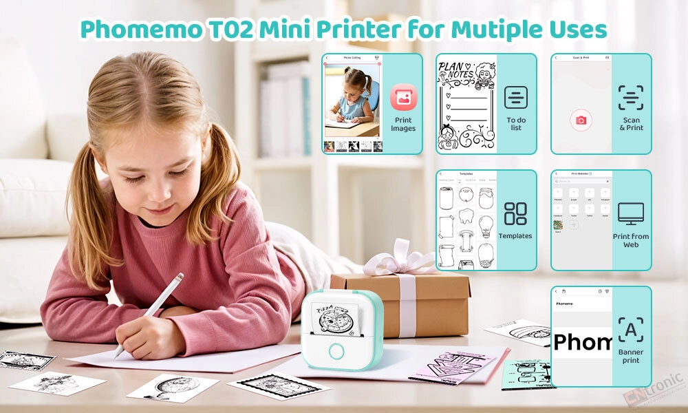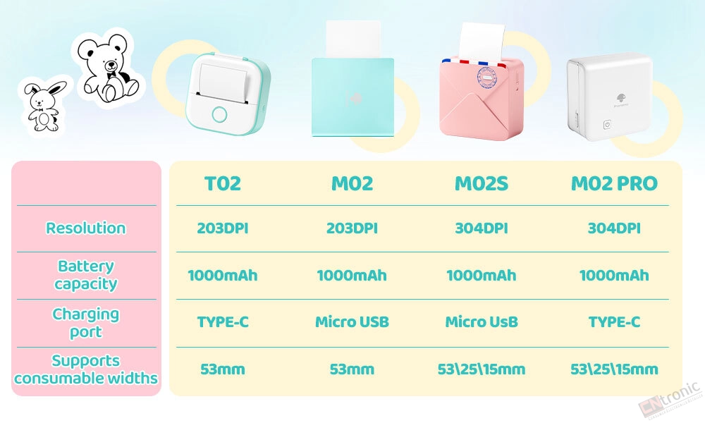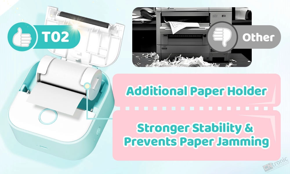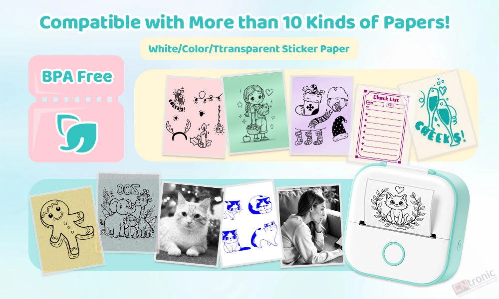 HD Clear Printing: T02 Mini Sticker Printer receipt printers have a cute look and a small size, specially designed for kids. More importantly, compared with similar mini printer, it has clear printing and high-definition imaging, which protects children's eyes while learning and playing
