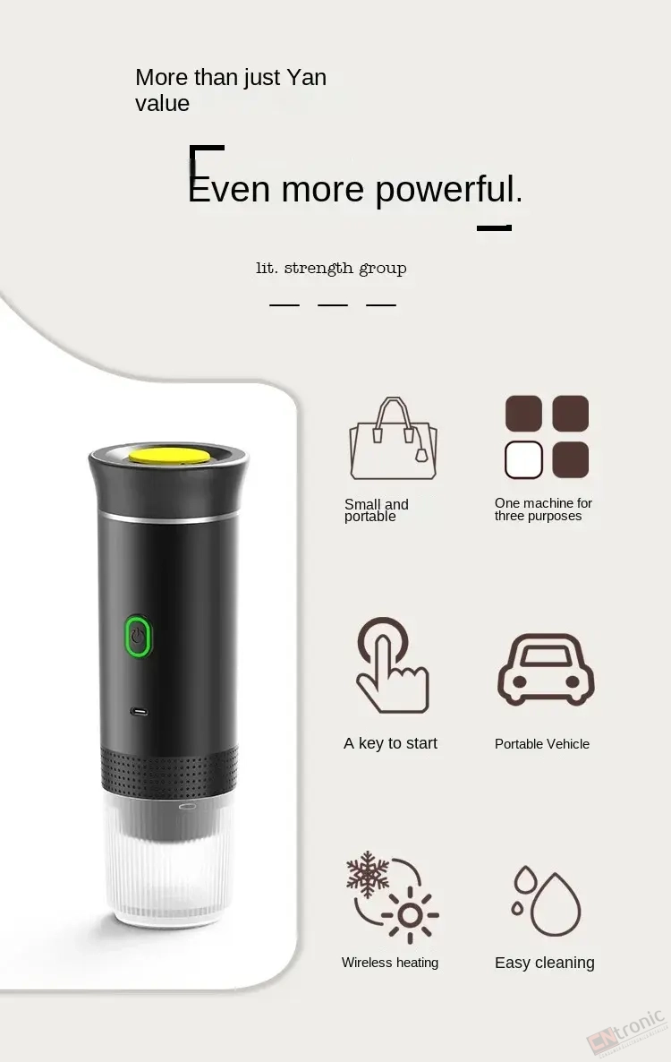 【Intelligent Extraction】Portable espresso machine adopts intelligent heating function, convenient extraction, double-click the power switch, open the heating extraction function, heating extraction. Long press the power switch, directly open the extraction function, convenient operation, suitable for all kinds of hot/cold drinking water.