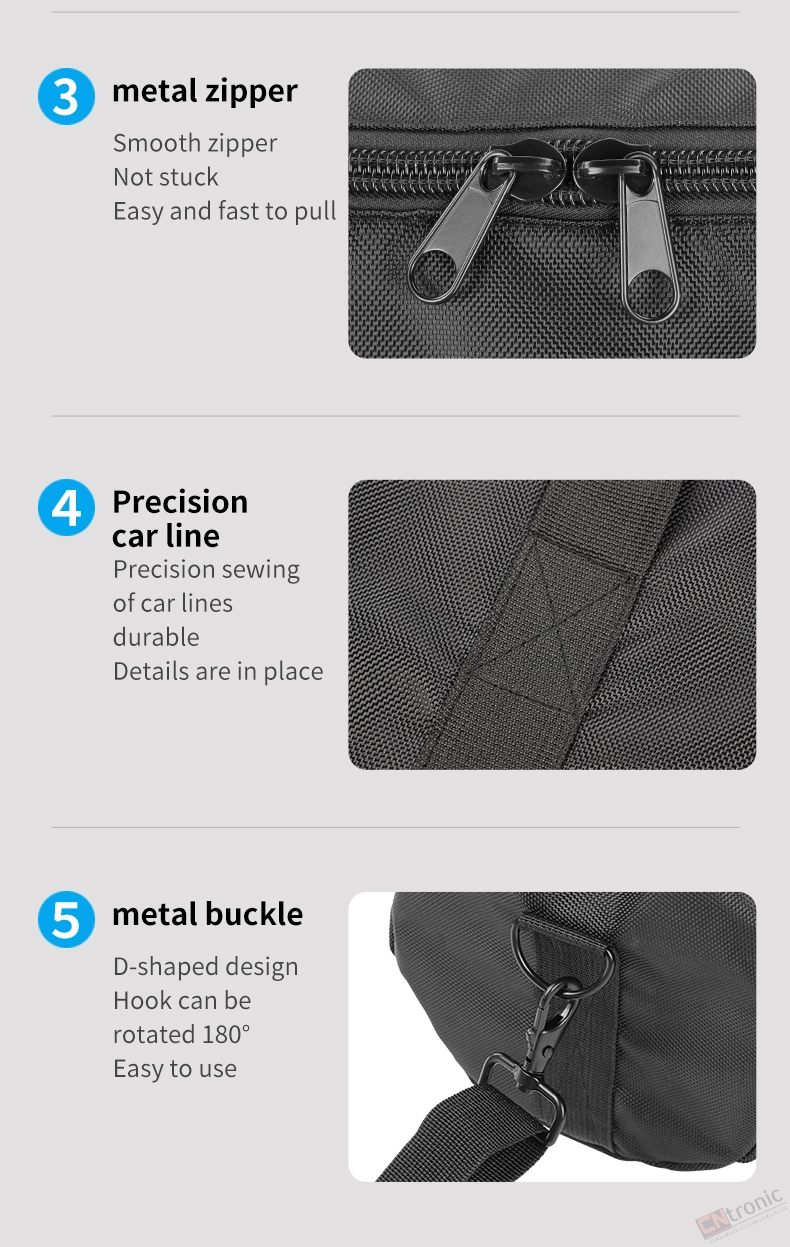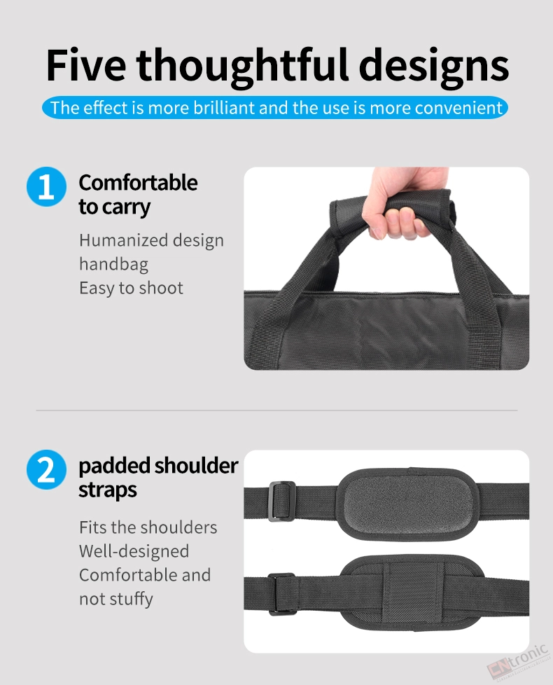 Large capacity - The carry bag can hold multiple devices effectively. And with an inner pocket you can store other small photo accessories.