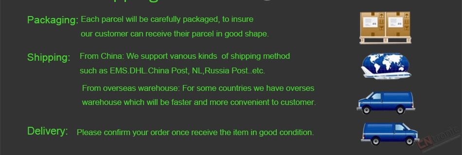 Packages from our warehouse in China will be shipped by ePacket or EMS depending on the weight and size of the product. Packages shipped from our US warehouse are shipped through USPS.